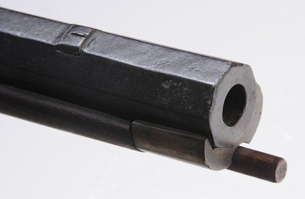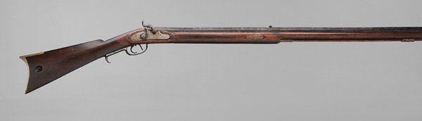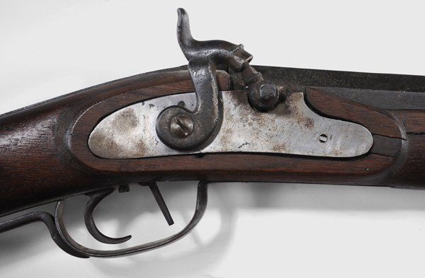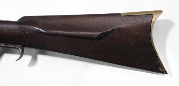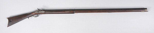 Percussion Chunk Long Rifle, full walnut stock, iron and brass mounts, heavy 49-1/2 in. octagonal barrel, stock with grease hole, raised cheekplate, attached label "Baxter Rifle Soddy-Daisy Tennessee"; no permit required, pitting at firing area and on barrel, forearm with repairs Provenance: Estate of the Late Douglas E. Jones, Tuscaloosa, Alabama