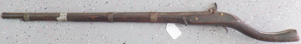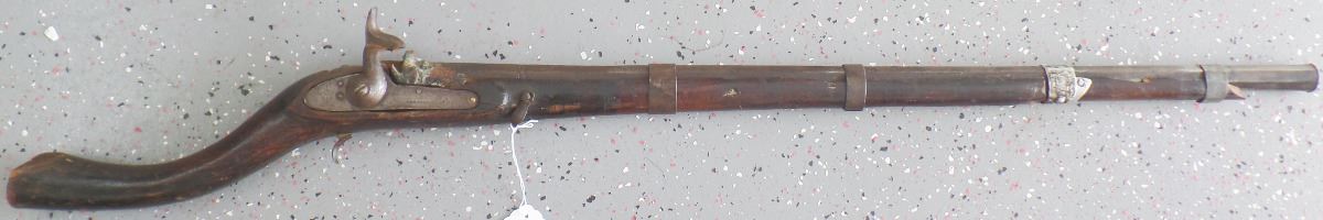 This rifle is 47 x 7 x 3 inches and is approximately 150/200 years old. It is from the Middle East Area and is a nice wall hanger. This type of rifle was used to shoot from a camel or horse and it was brought into the U.S. by the GI from Afghanistan. Parts missing. Shipping: $50