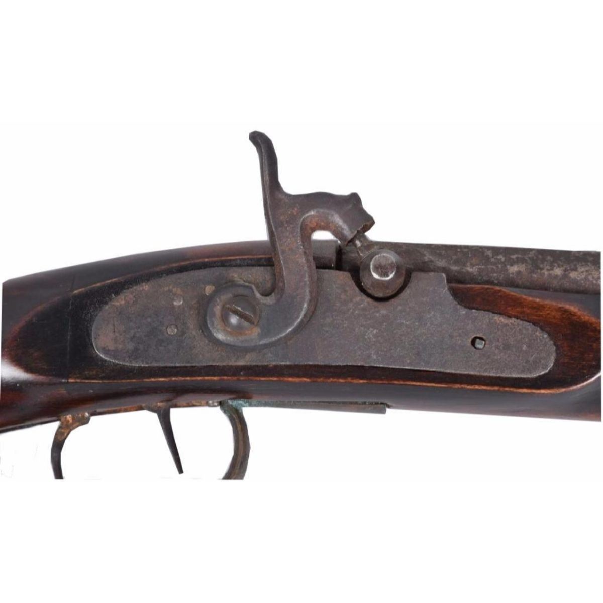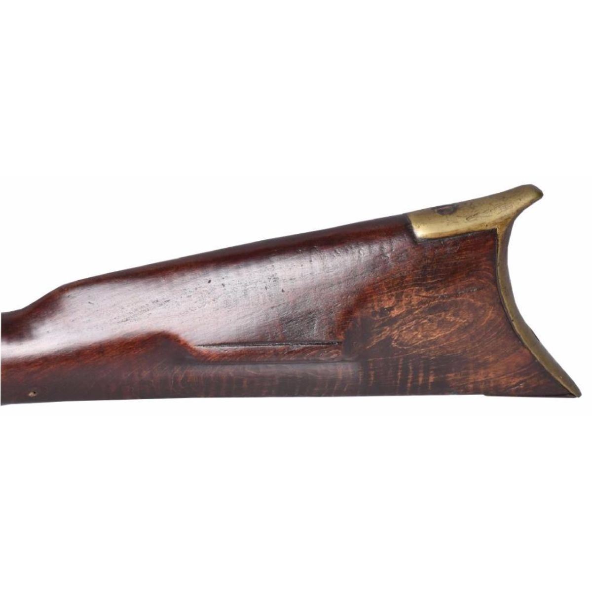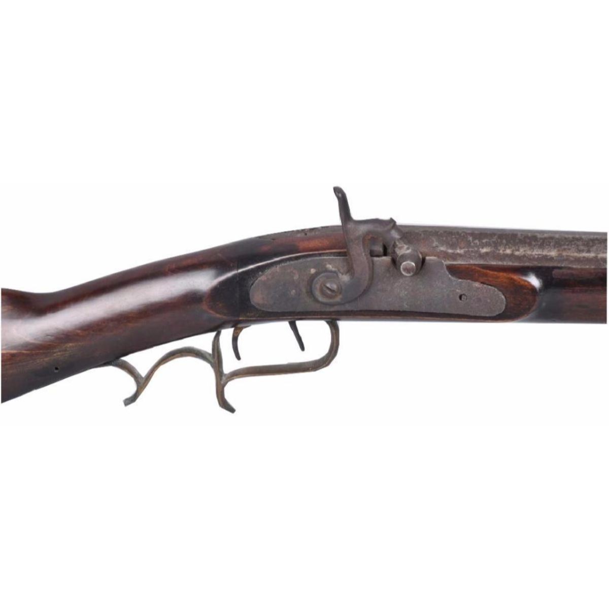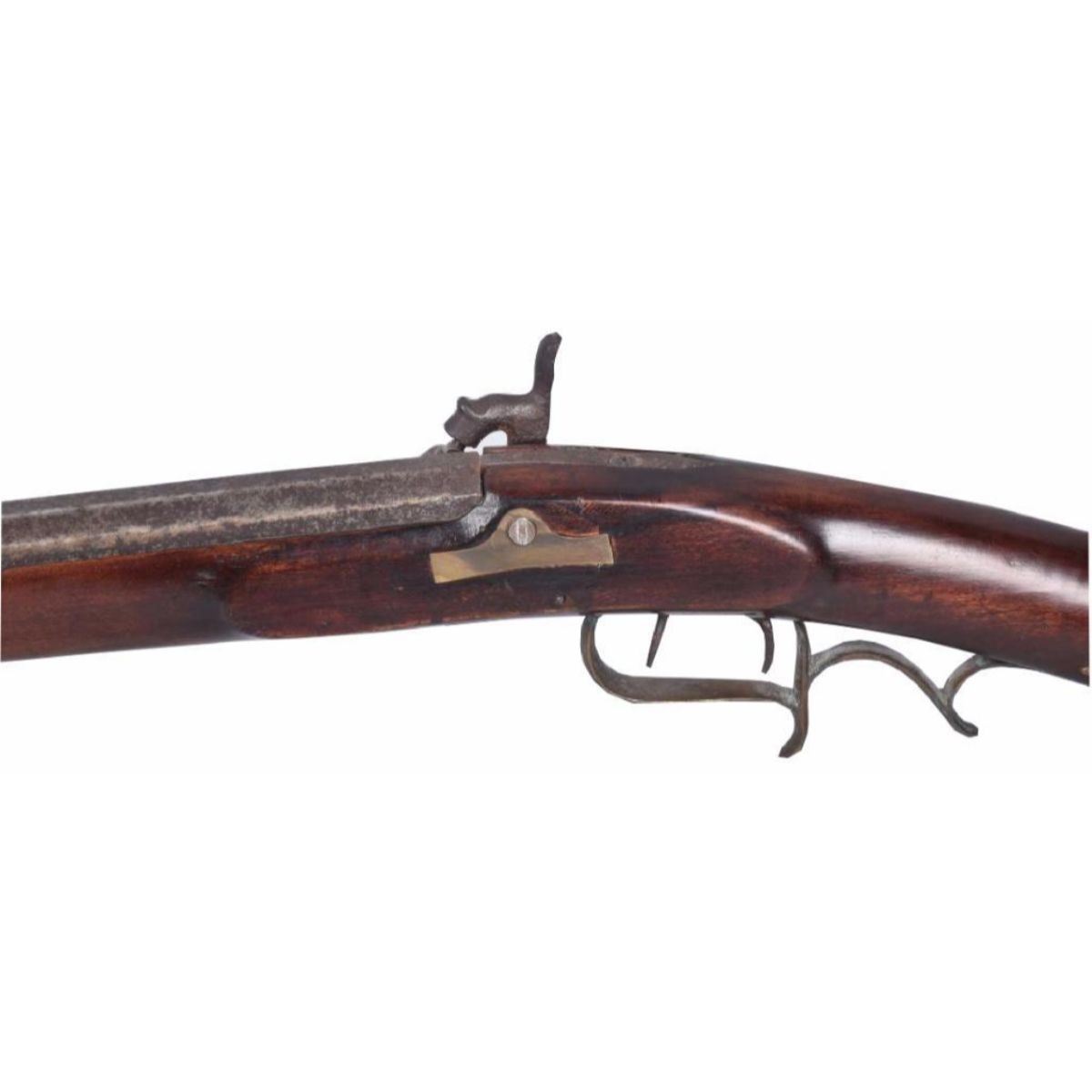 43 1/2" octagon barrel, action works, stock has been refinished and has restoration, brass hardware. Displays well. Very Good