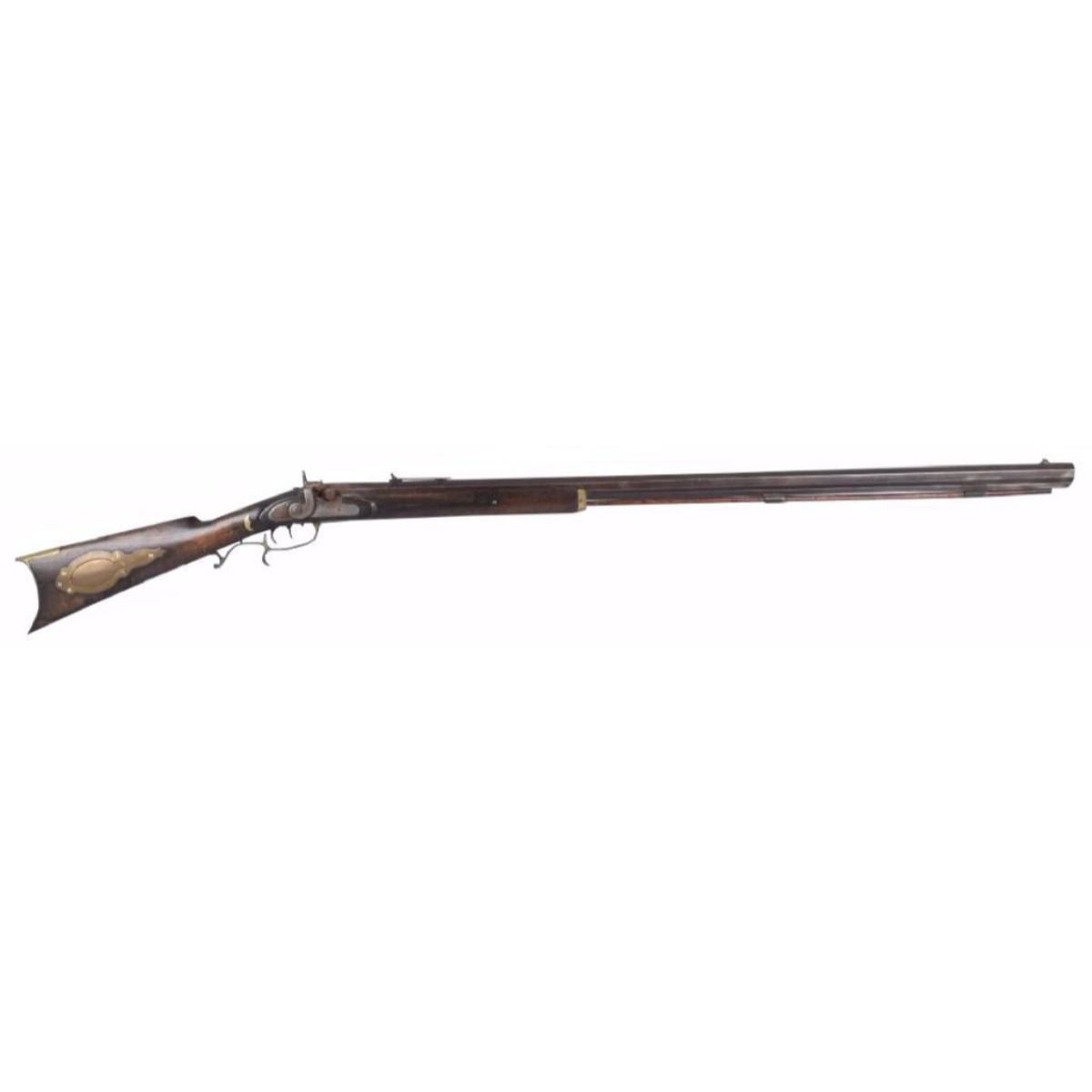 38" octagon barrel, action works with set trigger, stock appears refinished and has a repair in front of lock. Displays well . Very Good