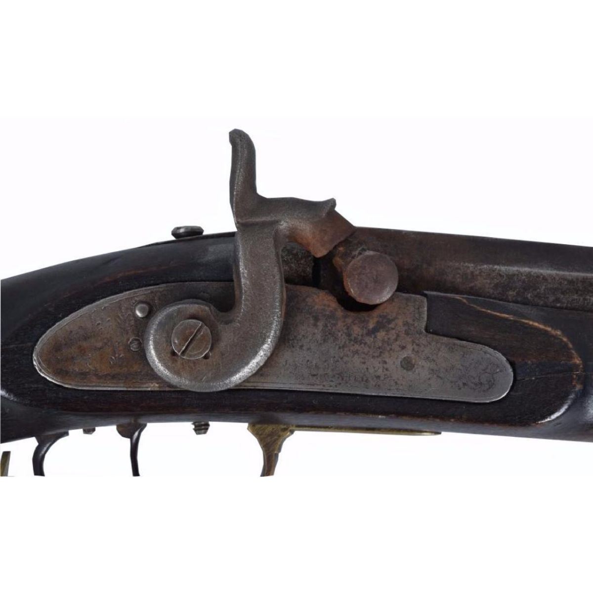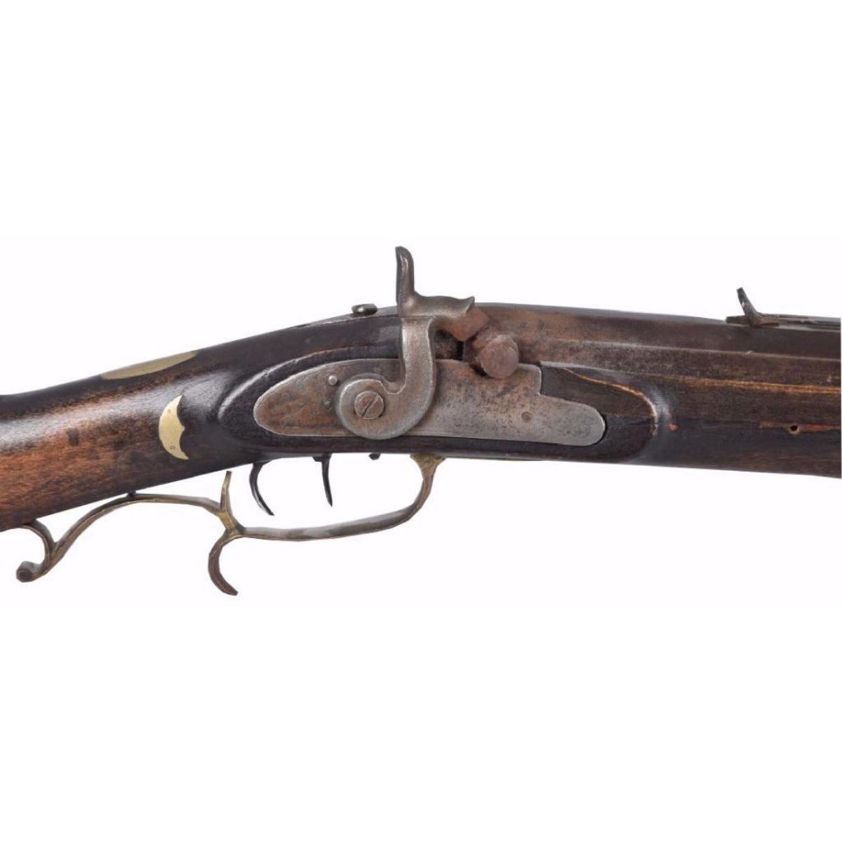 38" octagon barrel, action works with set trigger, stock appears refinished & has a repair in front of lock. Displays well.