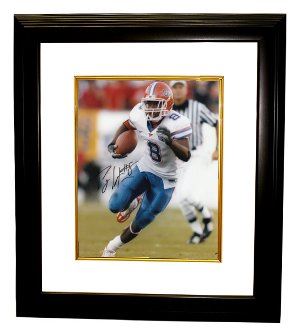 Percy Harvin finished his college career as one of the most prolific offensive threats in school history. In three seasons, he totaled 133 catches for 1,929 yards and 13 touchdowns, while rushing the ball 194 times for 1,852 yards with 19 touchdowns. His 32 career touchdowns is the most ever by a University of Florida wide receiver. He is the only player in UF history to rush for 100 yards and have 100 yards receiving in the same game (against Vanderbilt, 2007). Percy has hand autographed this Florida Gators 8x10 Photo. Custom White Mat and Black Frame as shown. FI Hologram and Certificate of Authenticity from Athlon Sports.