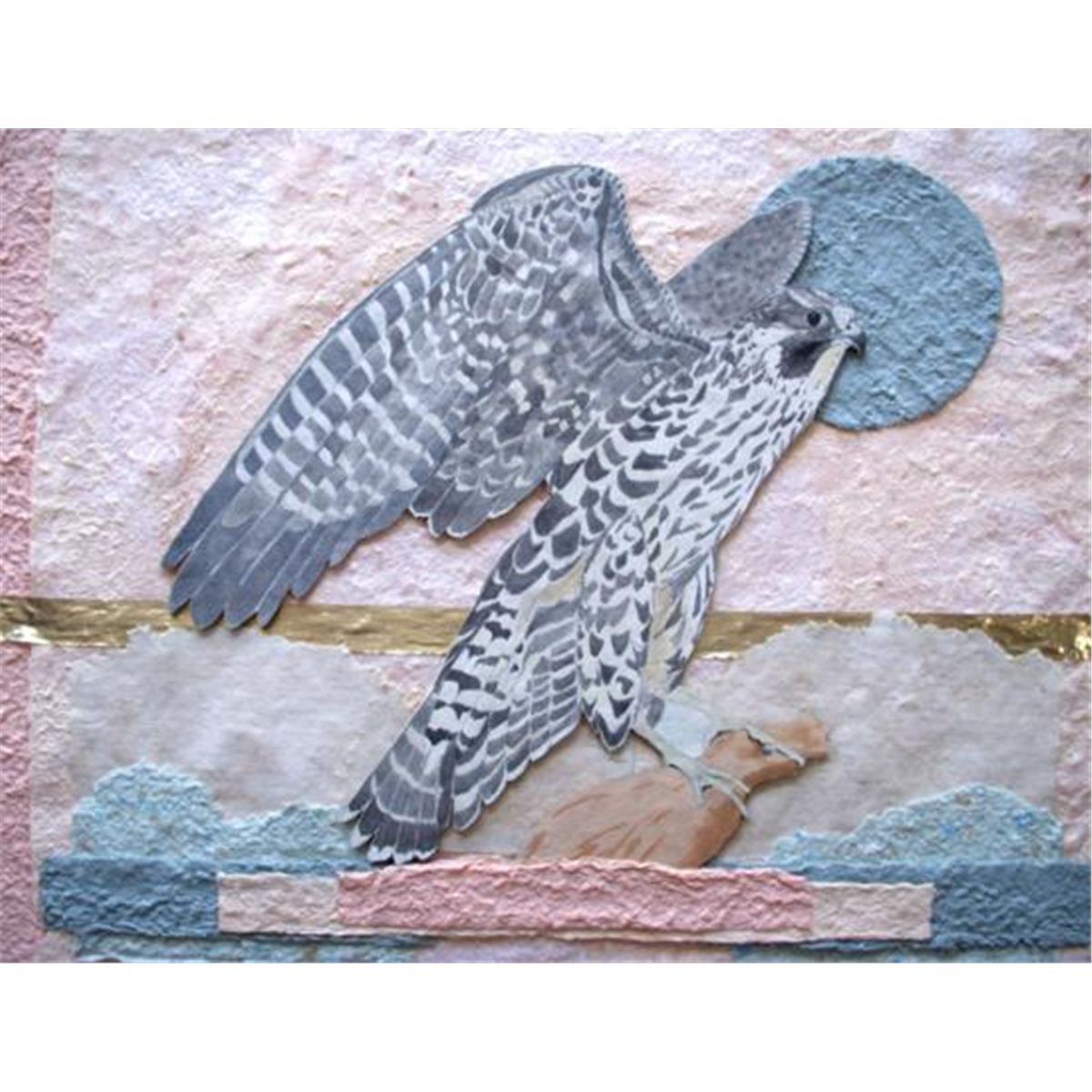 Mixed Media on Handmade and color died Paper.. A Beautiful piece for bird and falcon lovers. Coleman pieces are in homes and collections around the world.