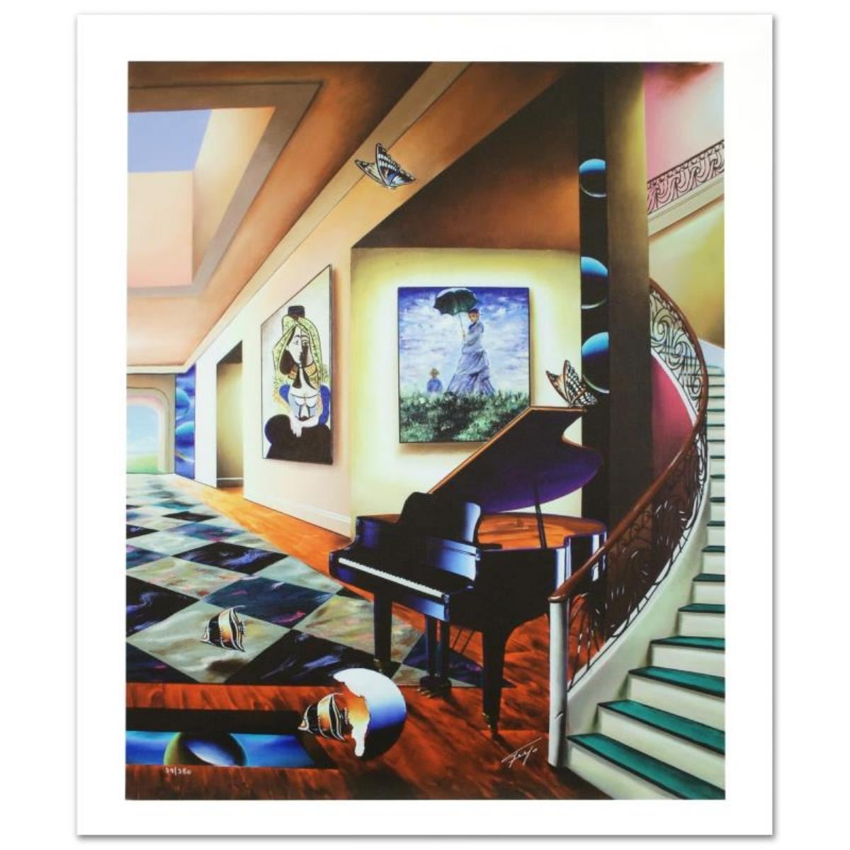 "Perfect Afternoon" is a limited edition giclee diptych on canvas, numbered and hand signed by Ferjo. This piece comes in two adjoining canvases, both have matching edition numbers; it is intended to be displayed as a diptych. Includes Certificate of Authenticity! Measures approx. 24" x 30" (each image)