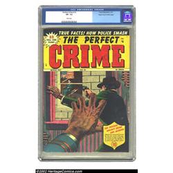 Perfect Crime #10 Mile High pedigree (Cross Publications, 1951) CGC VF- 7.5 White pages. This thriller cover presents an unusually effective three-dimensional style and utilizes a variety of shades and hues uncommon in 1951. And it always looks better on a Mile High book! We wish we could identify the artist, but our sources have turned up blanks. Like the preceding copy, this is the only issue #10 that CGC has graded to date. Perhaps this title is a bit more uncommon than noted by Overstreet and Gerber. Overstreet 2002 VF 8.0 value = $83. Important notice: We expect to be auctioning lots at the rate of 200-250 per hour. Sometimes eBay Premier live bid software cannot keep up with that pace, so we strongly recommend that you place a realistic proxy bid now as insurance to avoid disappointment. Also please note that all Heritage/CAA lots purchased through eBay Premier carry a 20% Buyer's Premium. Please make sure you read the Terms and Conditions.