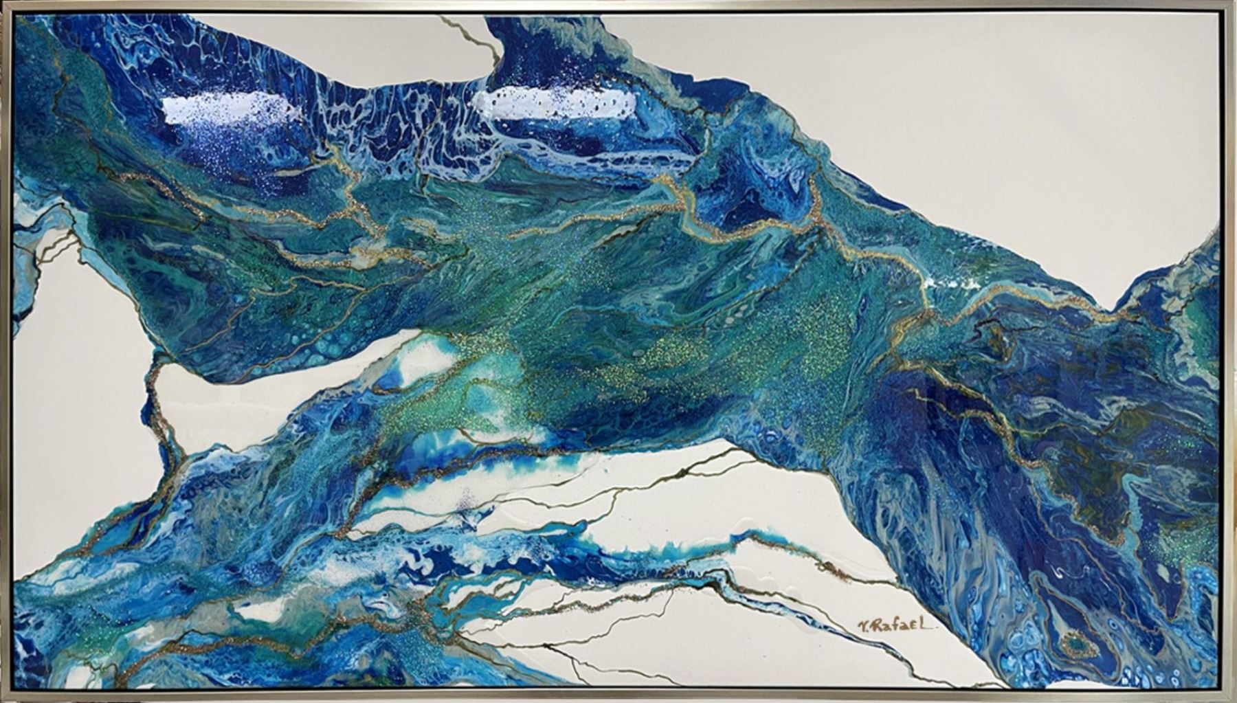 Enchanting original mixed media with poxy on canvas. Hand-signed by Rafael artist and accompanied by a certificate of authenticity. This artwork comes framed. Art size 39x70 inches.