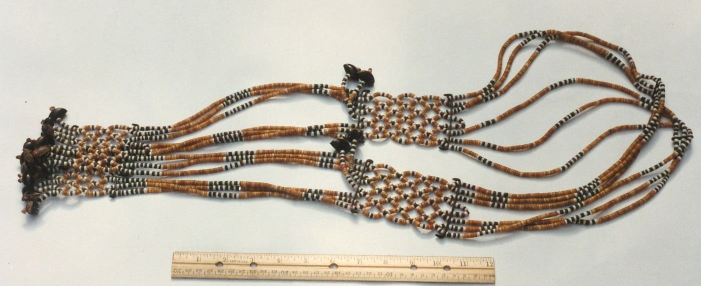 Description: Tafuliae' is the general name for strings of spondylus shell beads, used as money in Malaita, Solomon Islands. This example has 12 strings of brown, white, and black shell beads and is in perfect new condition; acquired by Mr. Opitz in the village of Auki, Malaita, in 1995, when it was made. Illustrated in Opitz, p. 330, bottom.