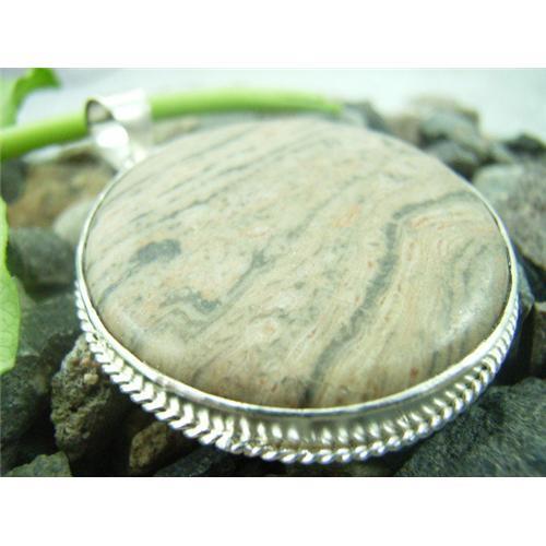 <tr><td>Title:Perfect Round Stone Sterling Silver Pendant </td></tr>