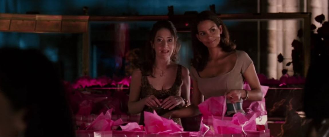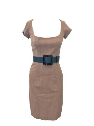 Perfect Stranger (2007) - Rowena (Halle Berry) custom made tan dress with green and black belt, worn under a sweater in the work room and later without the sweater. Can be seen on screen about 30 minutes into the movie.