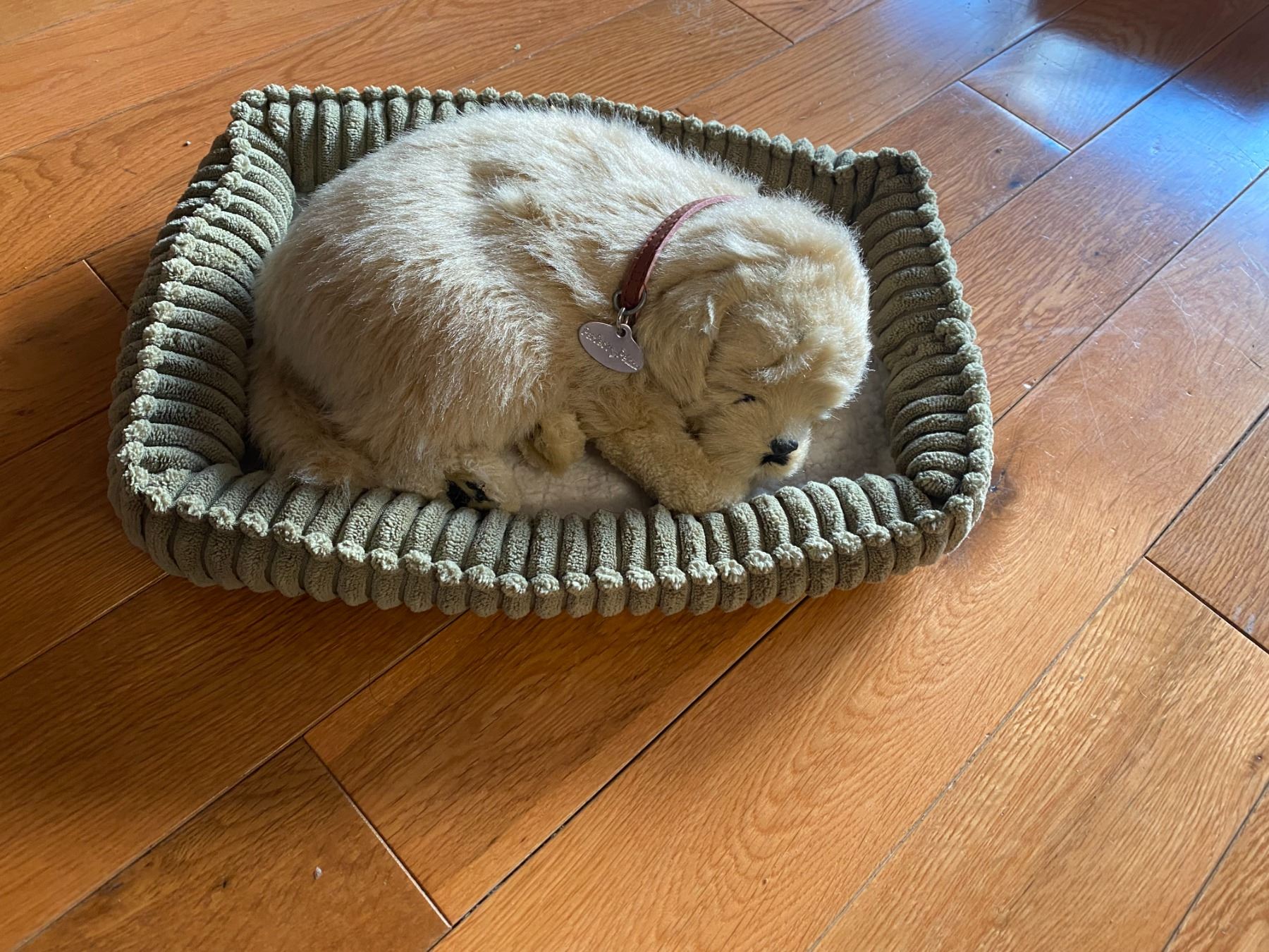 Perfect pet add batteries and it looks like a real dog sleeping