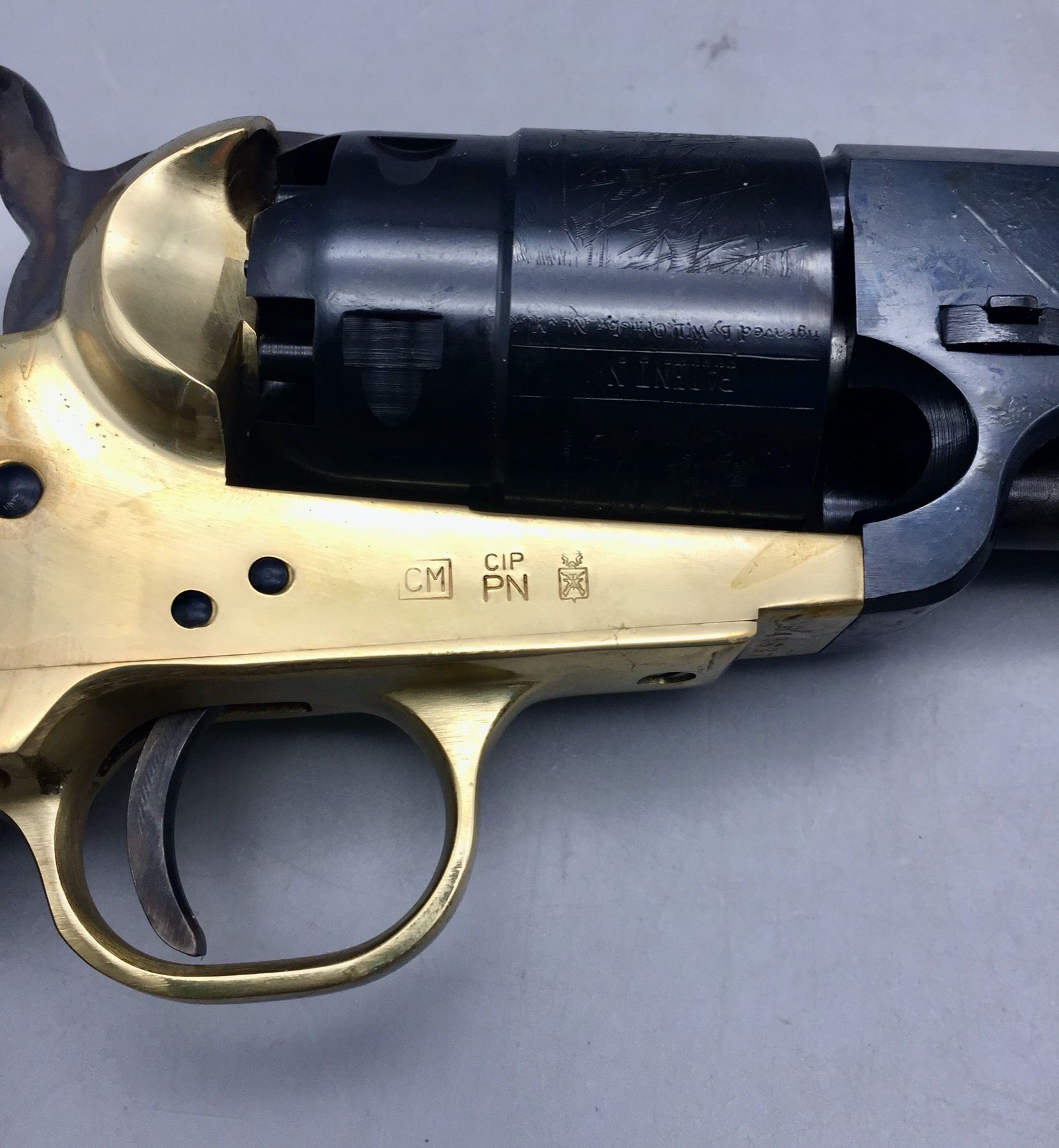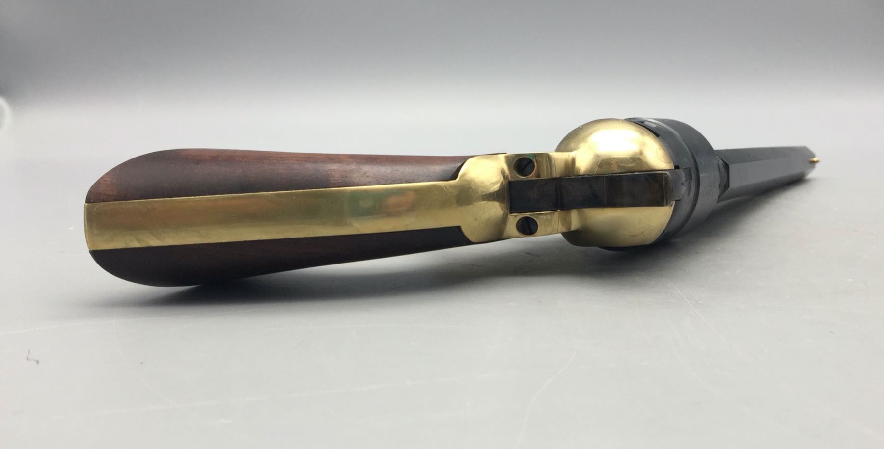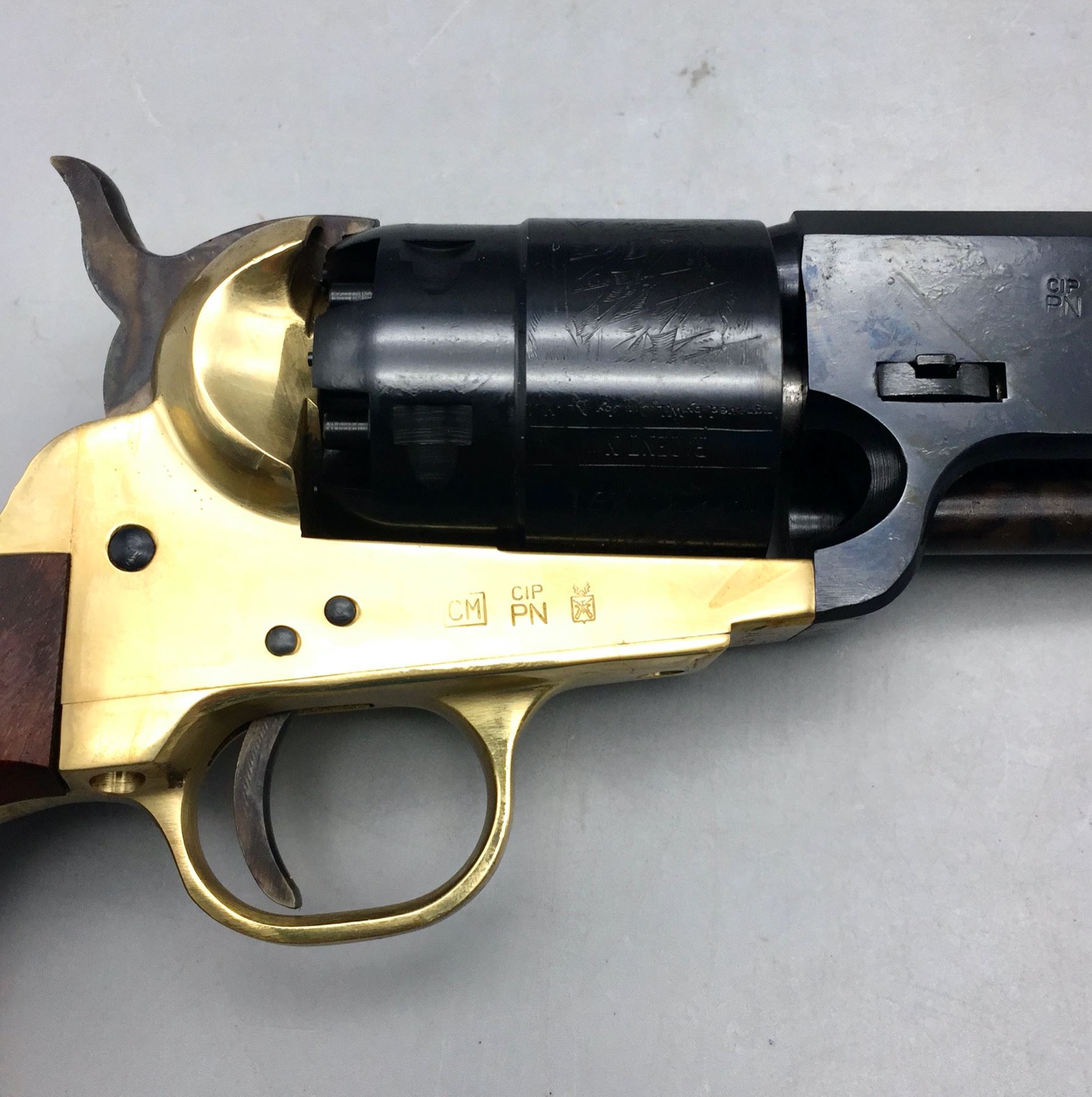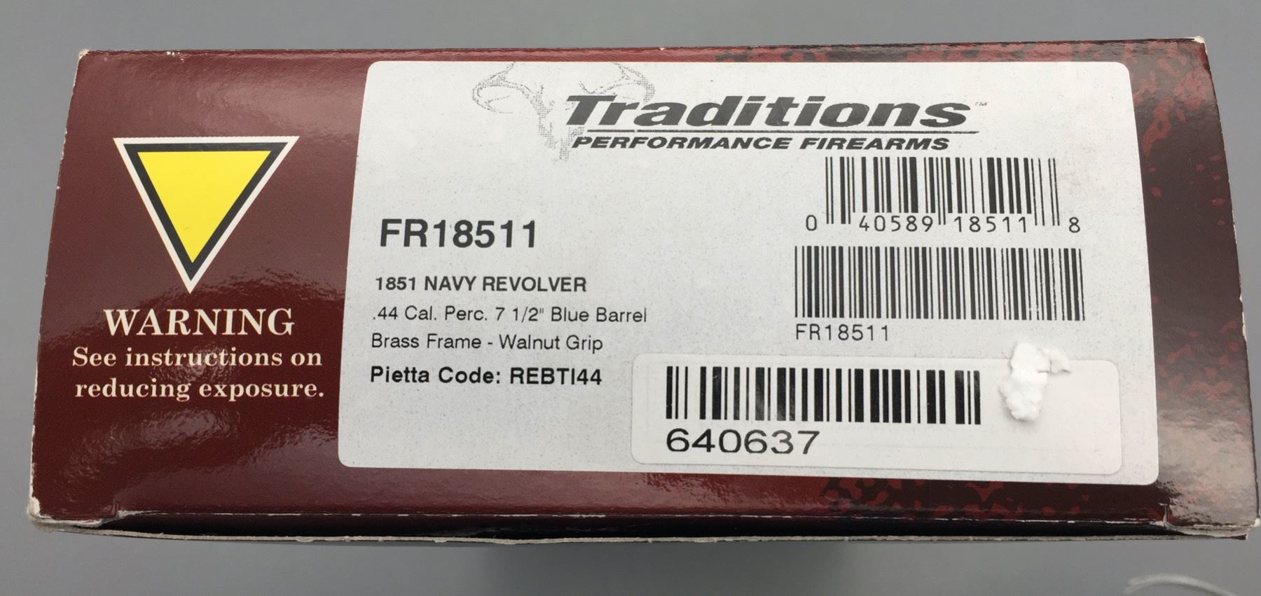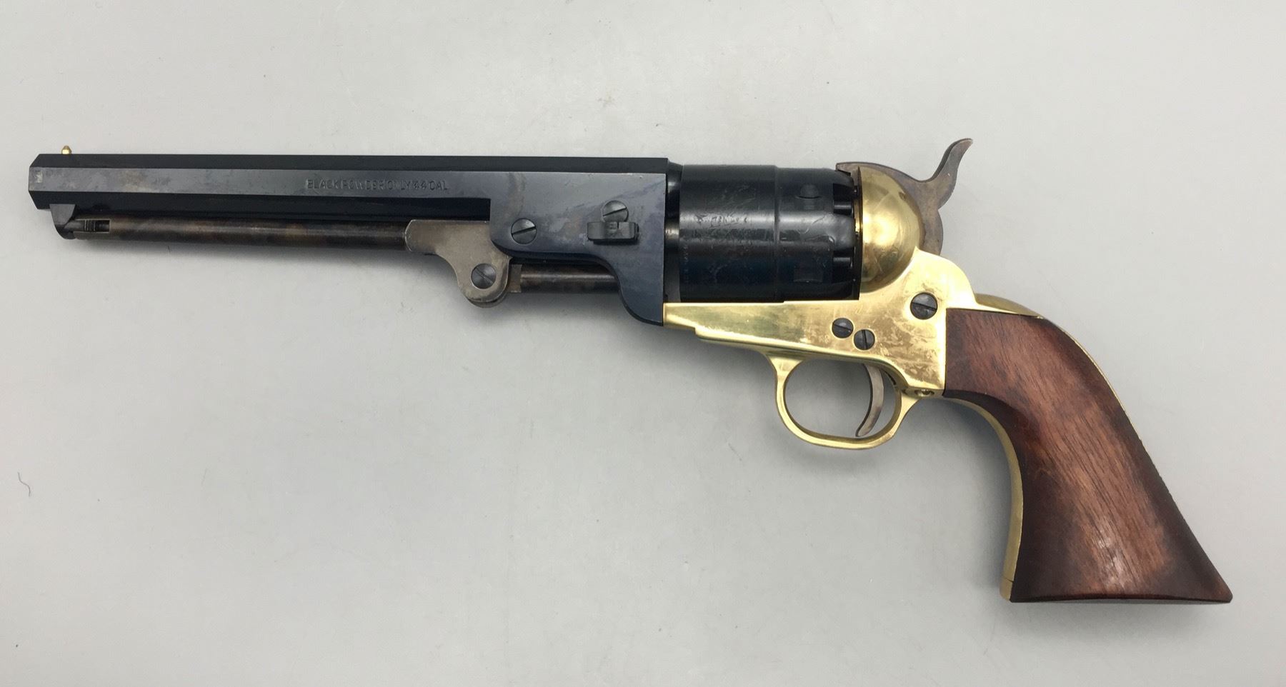 Description: For your enjoyment, we offer for sale this 1851 Navy Revolver is a .44 caliber with a brass frame and walnut grips and in its original box and paperwork. Appears to be in unfired condition. Maker: F.LLI PIETTA, Performance Fire Arms CO. Approx. Age: Modern. Serial No. 640637. Size: Barrel measures 7-1/2†with an overall length of 14â€. Condition: Good. Please look closely at the pictures - they are an important part of our description. Shipping: There will be a $15 handling / packaging fee for shipping this lot. The actual cost of postage will be added on top of that. *BLACK POWDER Replica firearm DOES NOT REQUIRE an FFL Transfer*