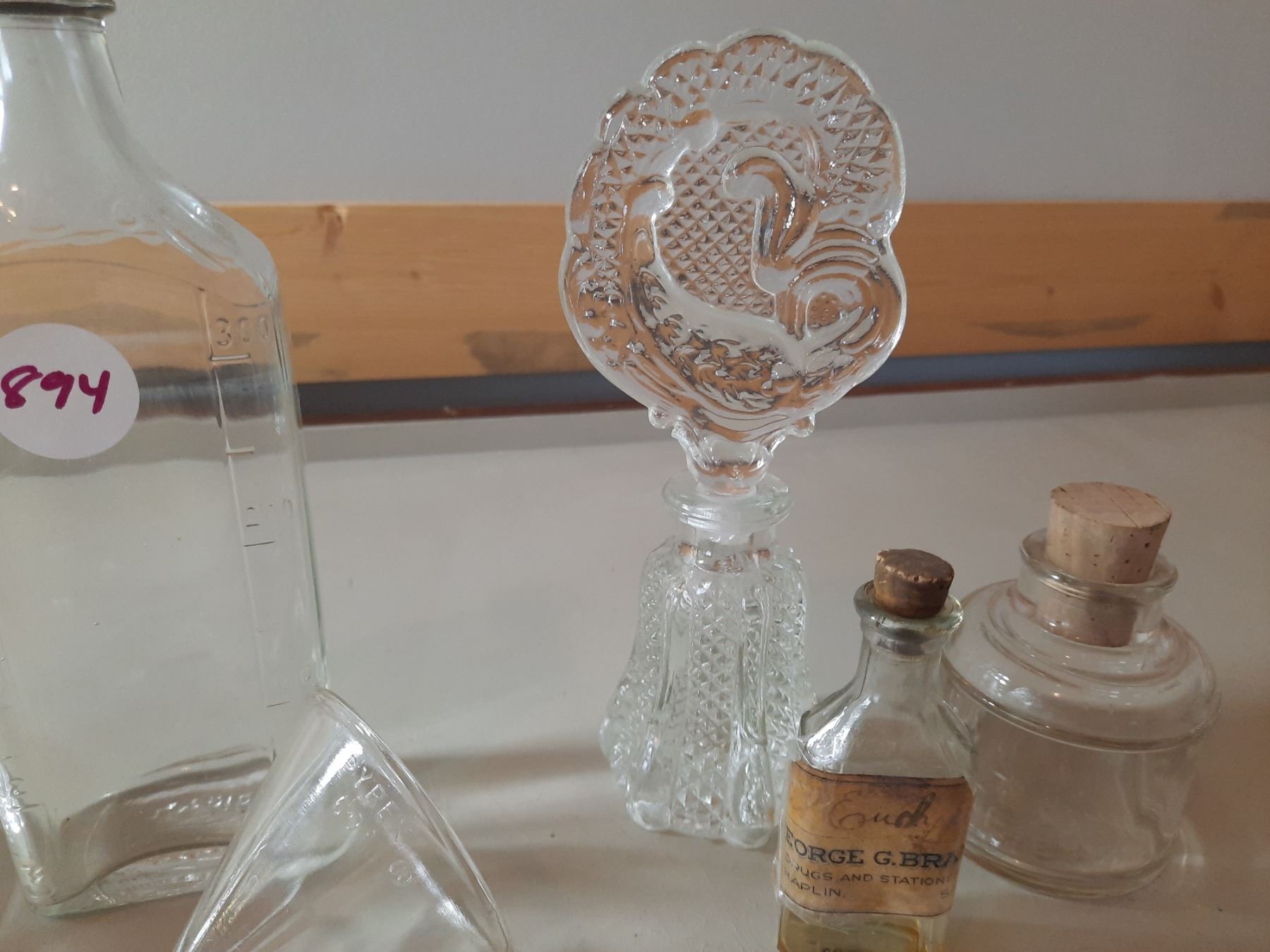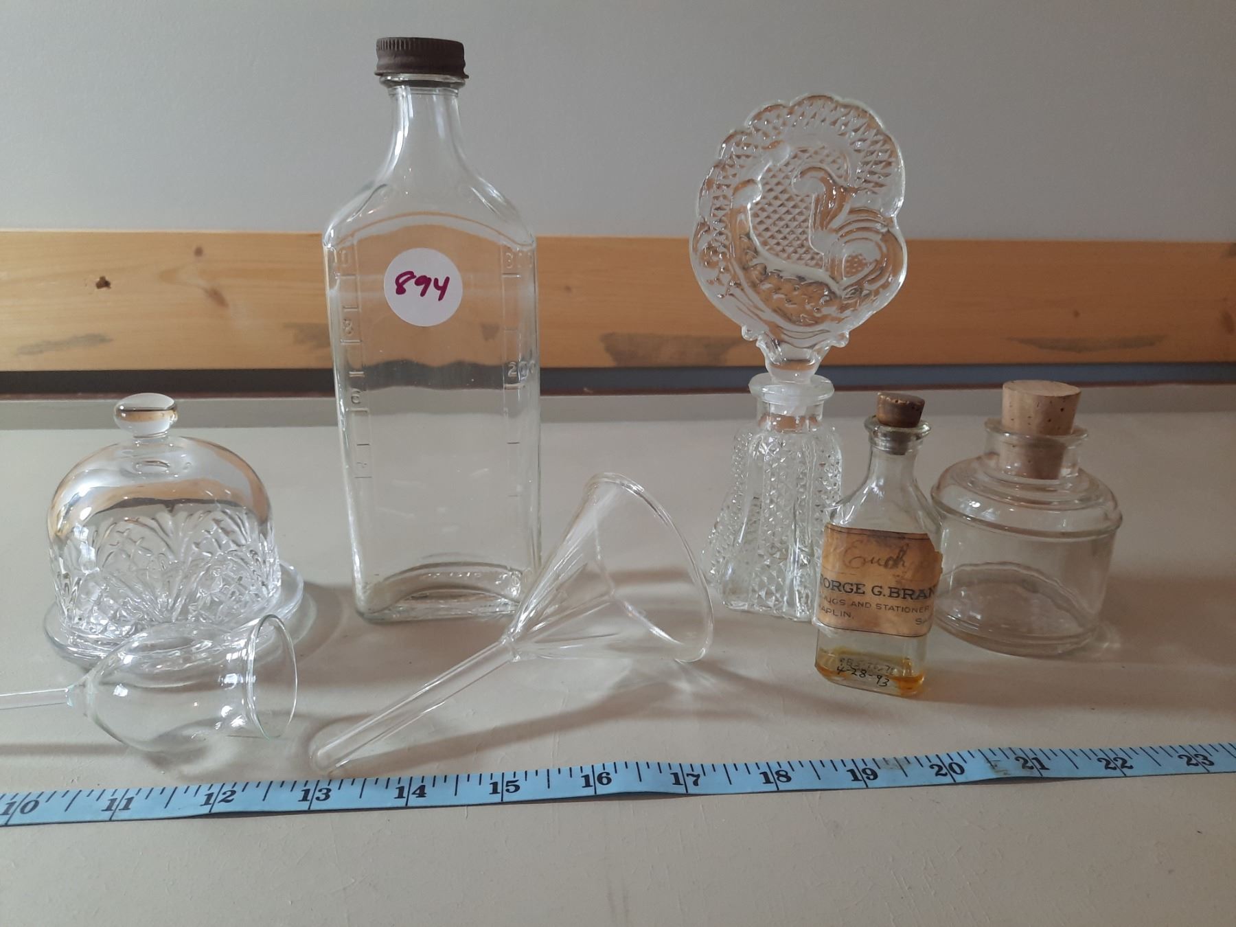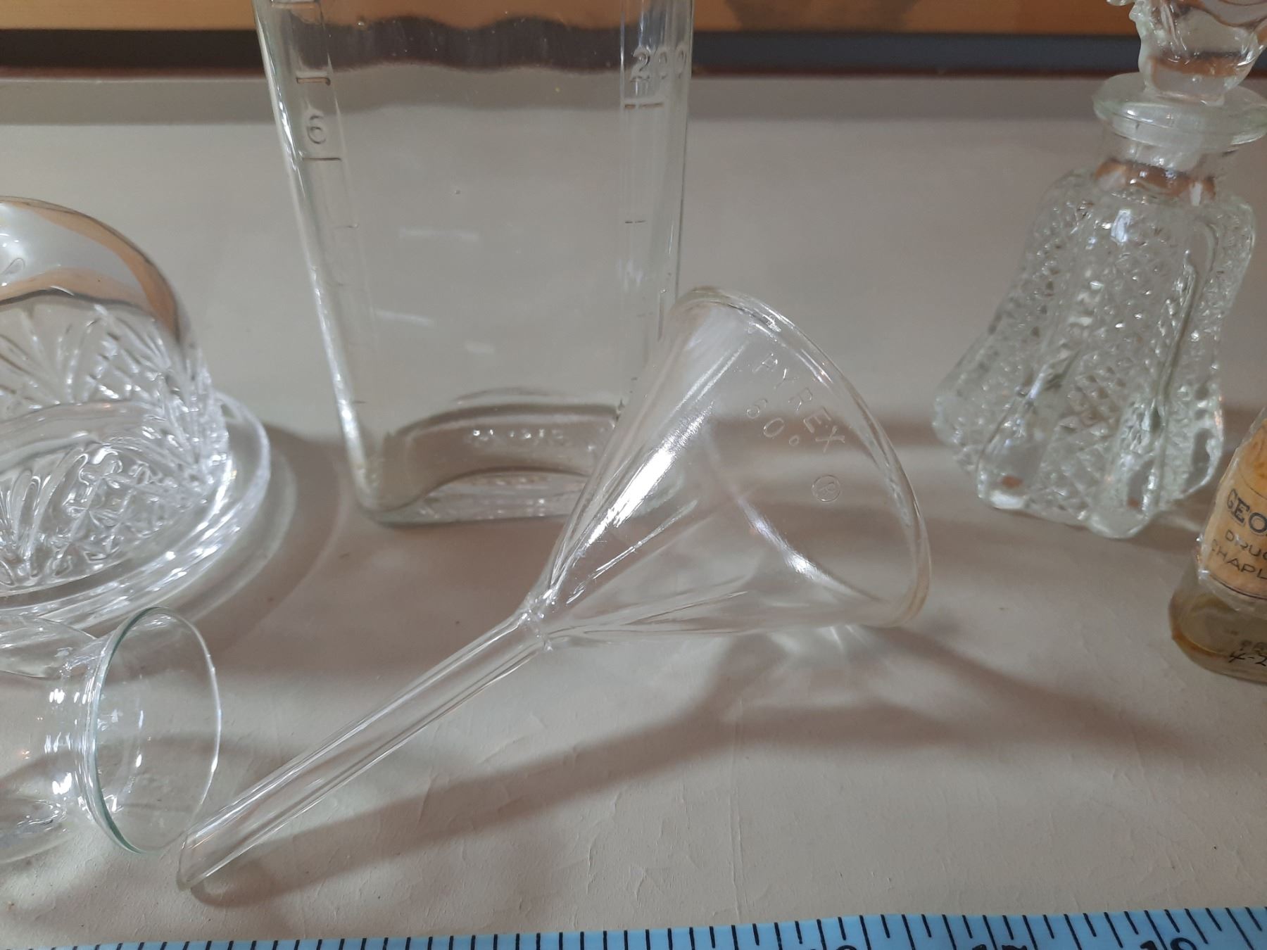 Perfume Bottle, Medicine Bottle, Pyrex Glass Funnel