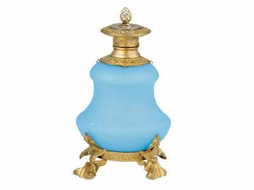 Blown blue chalcedony glass, gilt brass mounting. German, circa 1880 Size: 14.5 cm