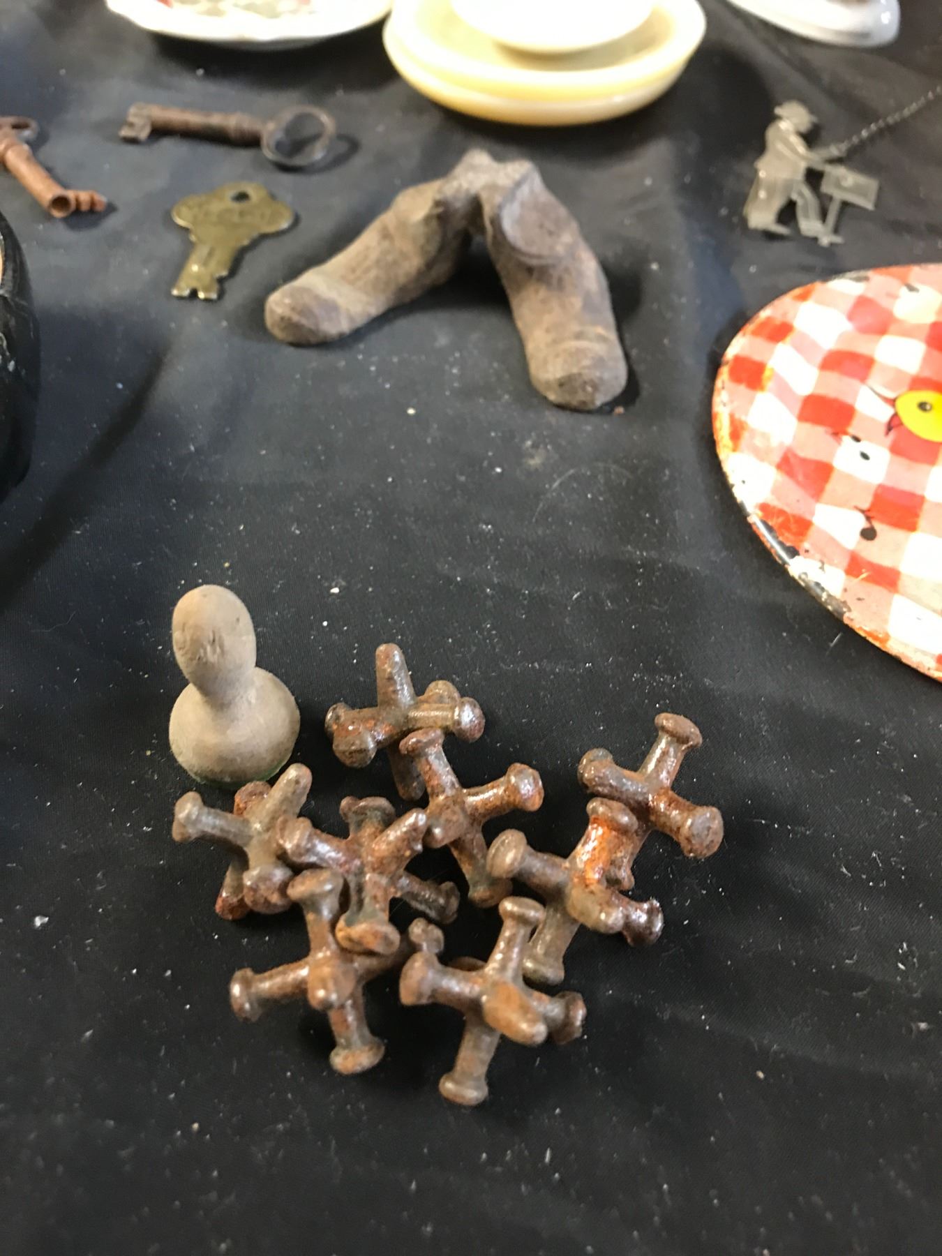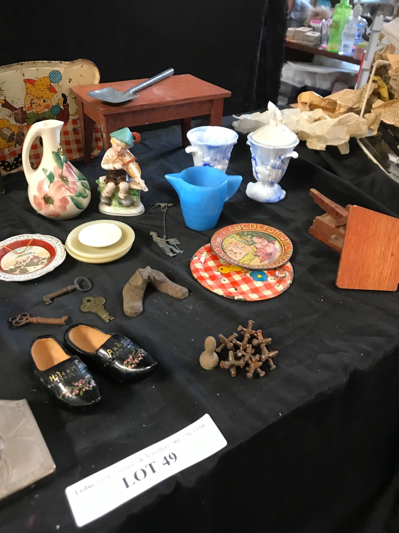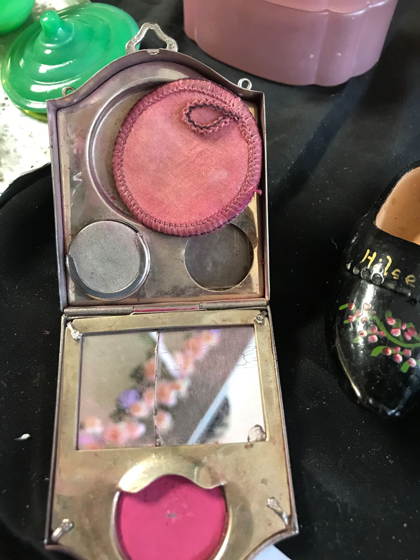 Vintage Rouge Compact, Perfume Bottles Clock Box (Pine Wood), Steel Jacks, Key Decor & various Children's Toys