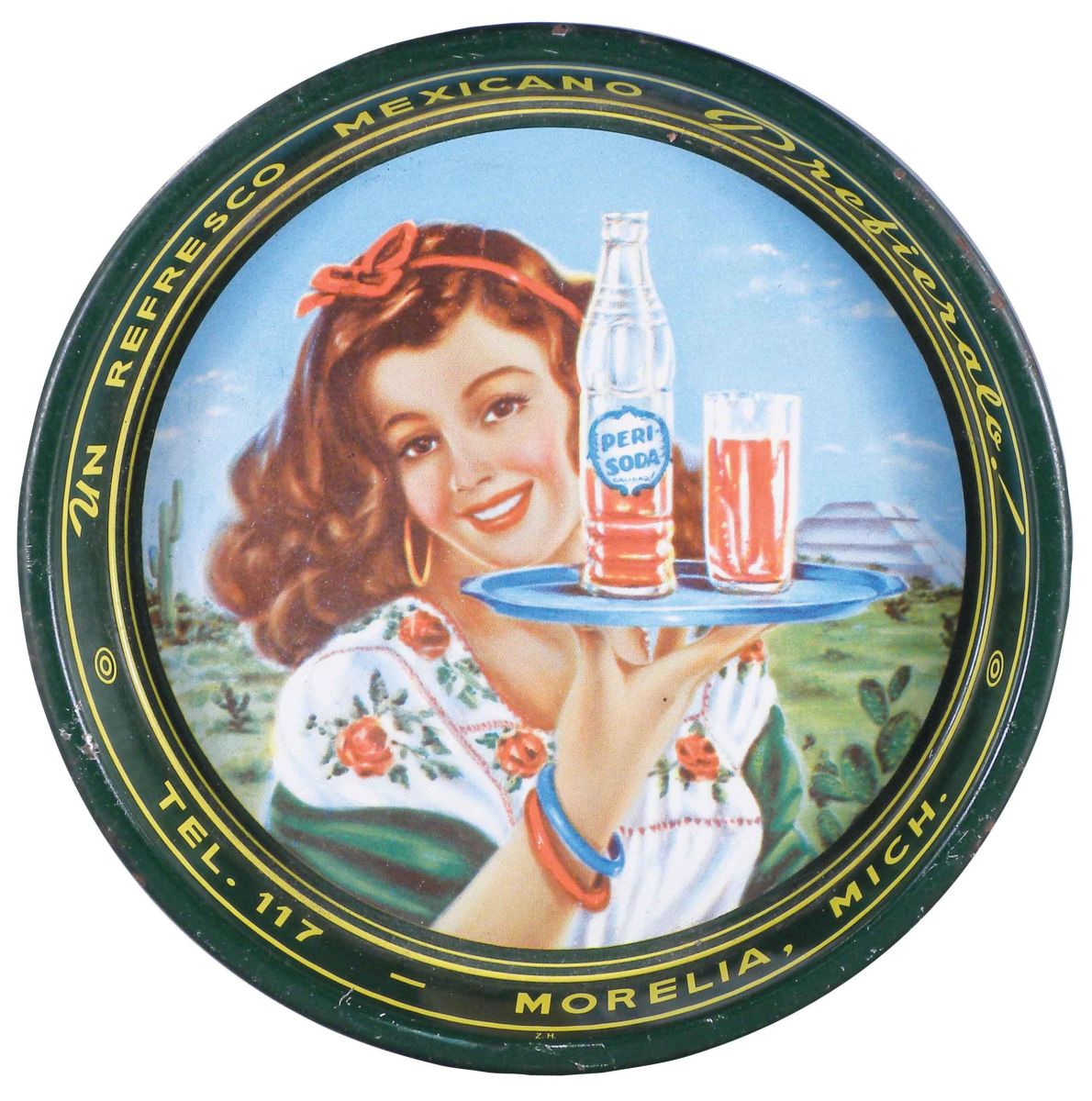Peri-Soda Tin Tip Tray. Morelia, MI. Excellent condition. 6 1/4 inch diameter. Start Price $20