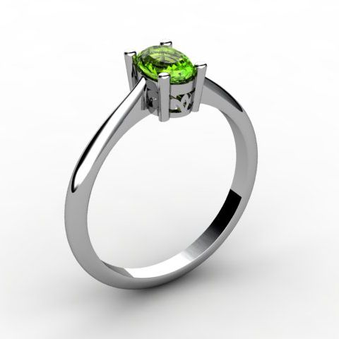 Peridot 0.50 ctw Ring 14kt White Gold **|**|** Mainstone: Peridot ; CTW: 0.5 ; Shape: Oval ; Gem Size: 6x4mm ; Metal / Purity: 14kt White Gold ; MSRP: $500