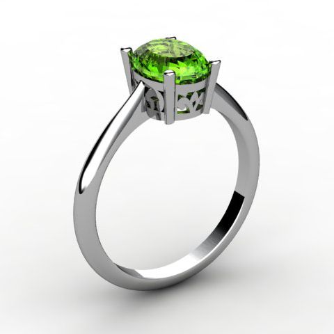 Peridot 0.95 ctw Ring 14kt White Gold **|**|** Mainstone: Peridot ; CTW: 0.95 ; Shape: Oval ; Gem Size: 7x5mm ; Metal / Purity: 14kt White Gold ; MSRP: $500