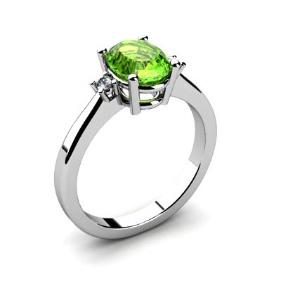 Peridot 1.35 ctw Diamond Ring 14kt White Gold **|**|** Mainstone: Peridot ; Total CTW: 1.35 ; Shape: Oval ; Gem Size: 8x6mm ; Metal / Purity: 14kt White Gold ; Gem Count 1: 1 Oval ; MSRP: $1100