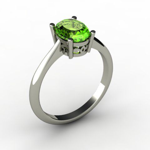Peridot 1.35 ctw Ring 14kt White Gold **|**|** Mainstone: Peridot ; CTW: 1.35 ; Shape: Oval ; Gem Size: 8x6mm ; Metal / Purity: 14kt White Gold ; MSRP: $600