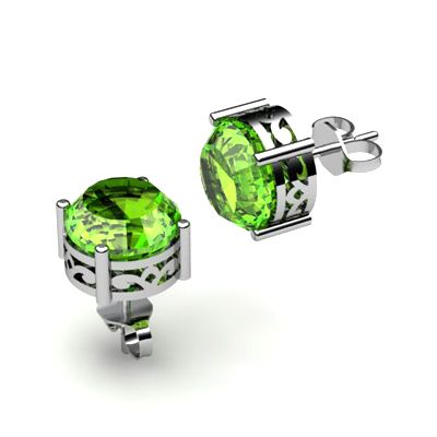 Peridot 2.00ctw Earring 14kt White Gold **|**|** Mainstone: Peridot ; Total CTW: 2.00 ; Shape: Round ; Gem Size: 8mm ; Metal / Purity: 14kt White Gold ; MSRP: $1000