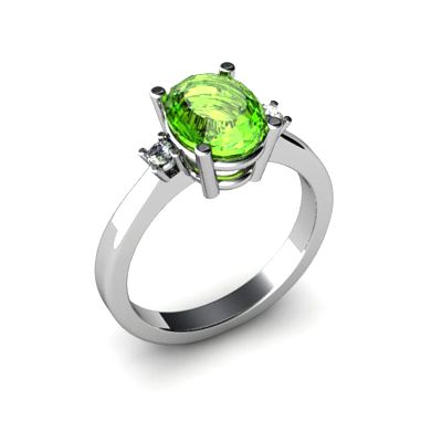Peridot 2.00ctw Ring 14kt White Gold **|**|** Mainstone: Peridot ; Total CTW: 2.00 ; Shape: Oval ; Gem Size: 9x7mm ; Metal / Purity: 14kt White Gold ; Gem Count 1: 1 Oval ; MSRP: $1400