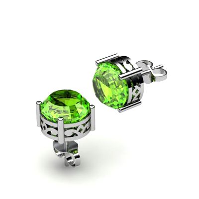 Peridot 2.50ctw Earring 14kt White Gold **|**|** Mainstone: Peridot ; Total CTW: 2.50 ; Shape: Round ; Gem Size: 7mm ; Metal / Purity: 14kt White Gold ; Gem Count 1: 2 Round Cut ; MSRP: $700