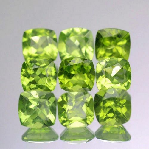 GEMSTONE - PERIDOT , SHAPE - CUSHION , SIZE - 7X7 MM , QUANTITY - 5 PIECES , WEIGHT - 7.50 Cts. ,  COLOR - GREEN , NATURAL/LAB CREATED - NATURAL , TREATMENT - NONE , CUT GRADE - EXCELLENT , COUNTRY OF ORIGIN - AFRICA , COUNTRY OF MANUFACTURE - INDIA