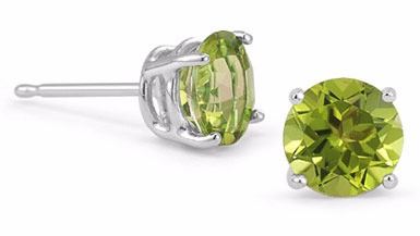 Peridot 8mm 4.0 tcw Classic Stud Earring 14K White or Yellow Gold