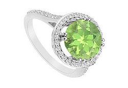 This delightful ring set atop is a bigger round peridot in the center & is encircled by brilliant-cut smaller round diamonds. This stunning ring is made in 14K white gold & has a total gem weight (TGW) of 1.25 carats.