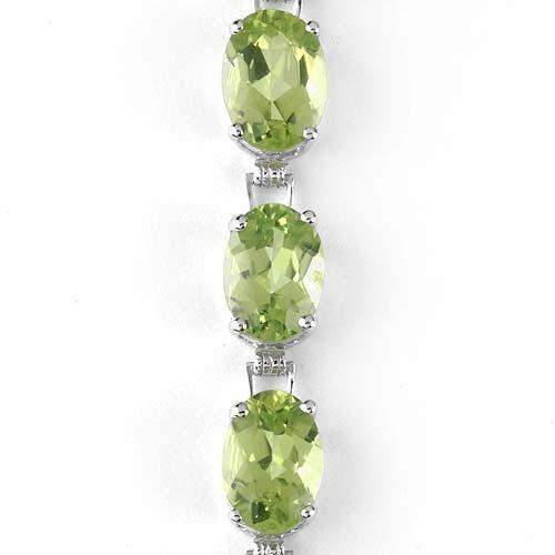 Eighteen oval cut, 18.0ctw. apple green peridot are prong set in this 14kt. white gold bracelet. The bracelet is 7 inches in length and features a tongue and groove and figure eight safety clasps.