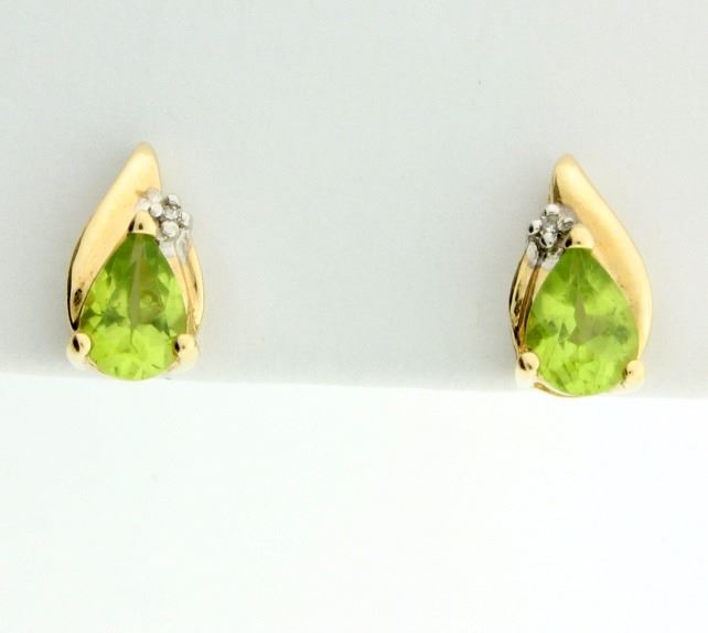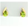 In 14K yellow gold, each earring contains a .75ct pear shaped peridot with excellent color and clarity. Also there is one 1/2pt diamond. They are 1/2 inch long. 2.0g