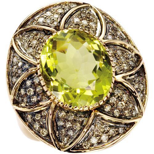 <B>Peridot, Diamond, Gold Ring</B></I><BR><BR>The ring centers an oval-shaped peridot measuring 16.50 x 14.00 x 9.30 mm and weighing approximately 13.50 carats, enhanced by full-cut diamonds weighing a total of approximately 1.15 carats, set in 14k yellow gold. Gross weight 16.00 grams.<BR>*Note: Size 9-1/2 (sizeable) <B>Condition Report:</B> Ring<BR><BR>Diamonds<BR><BR>Average Color: JKL<BR><BR>Average Clarity: SI, I<BR><BR>Shapes: Round<BR><BR>Diamond Count: 100+<BR><BR>Colored Gemstones: Peridot<BR><BR>Average Clarity: Good<BR><BR>Shapes: Oval<BR><BR>Gemstone Count: 1-25<BR><BR>Overall Condition: Good<BR><BR>Notes: Oversized ring is nicely designed. Dimensions: 1 1/4 x 1 inch.<BR><BR><b>Shipping:</b> Miscellaneous Collectibles, Smal (<a target="_blank" href="http://www.heritageauctions.com/common/shipping.php">view shipping information</a>) <BR><BR><B>Important notice
