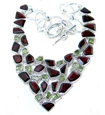Silver and Peridot & Garnet Necklace. Items are hand made as ordered so please allow 6 to 8 weeks for delivery.