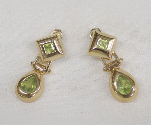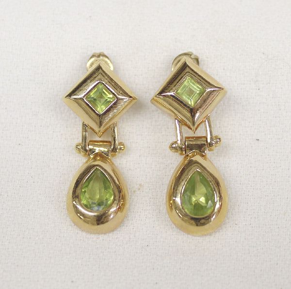 Peridot Gold Tone Drop Earrings, measures 1in. L x .75in. W