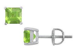 A pair of perfectly matched square peridots is set in a rich 14K white gold prong mounting. These gemstone stud earrings have a total weight (TGW) of 2.00 ct and are available in either screw-back or push-back. Available in yellow gold also.
