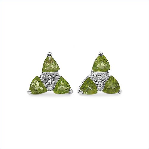 Peridot, Wht Topaz & Sterl Silver Earrings. Earrings have 6 trillion cut Peridots and 6 round White Topaz stones set in .925 Sterling Silver. Peridot and White Topaz ctw: .96. Earrings total weight: 1.05 grams.