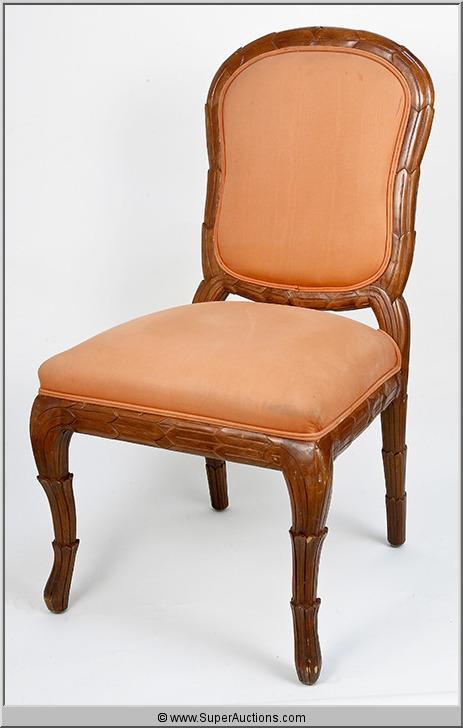World Famous Perino's Restaurant Dining Room Chair. Wood Legs and Frame. Used Condition-Stain on Seat. SKU# 563518.078 Dimensions L23" x W21" x H39" (Oversized Item)