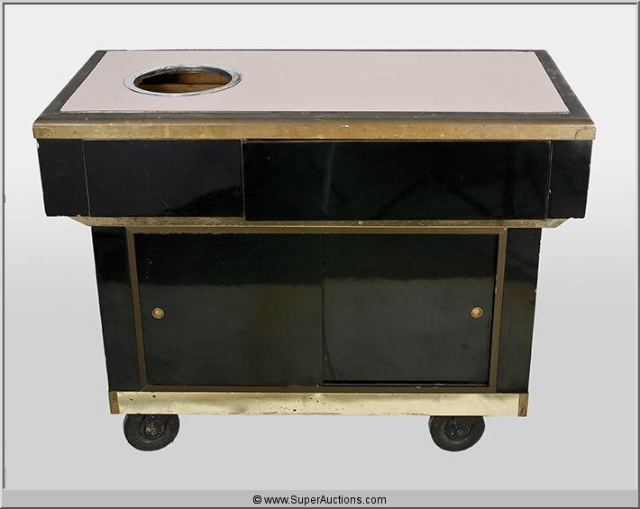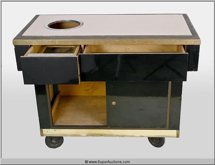 World Famous Perino's Restaurant Top Service Cart-Rolling Brass with Pink. SKU#563518.055. Dimensions L21 1/2" x W43" x H33" (Oversized Item)