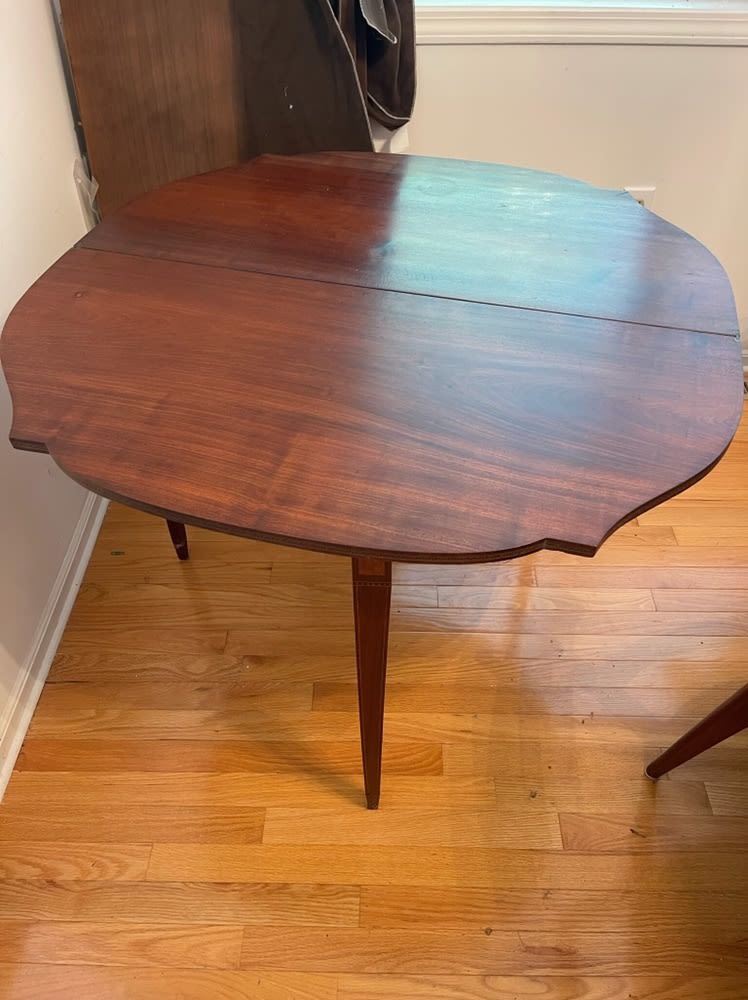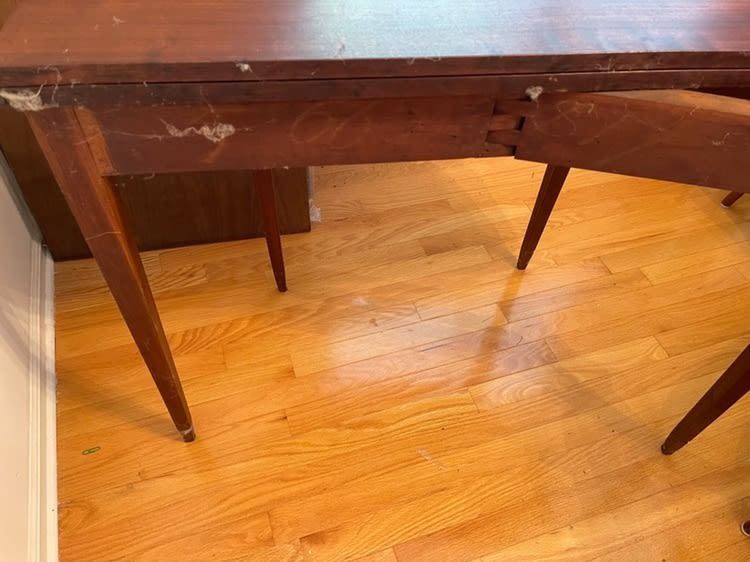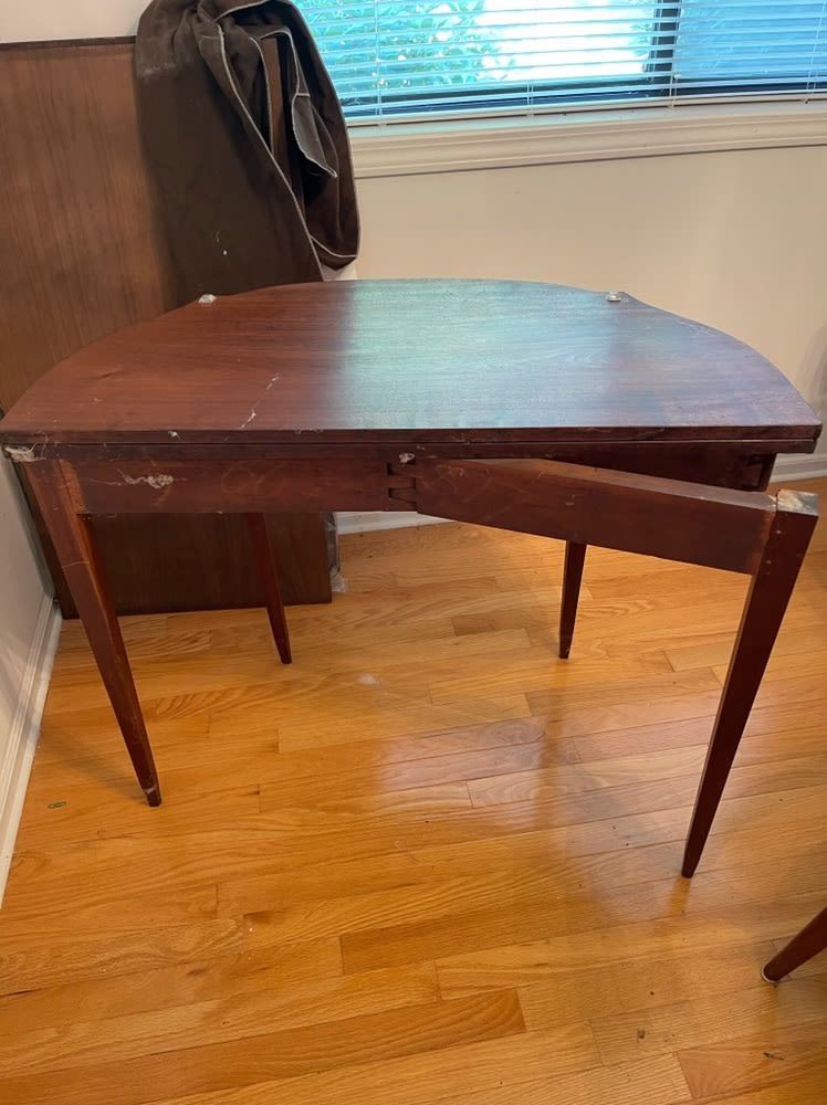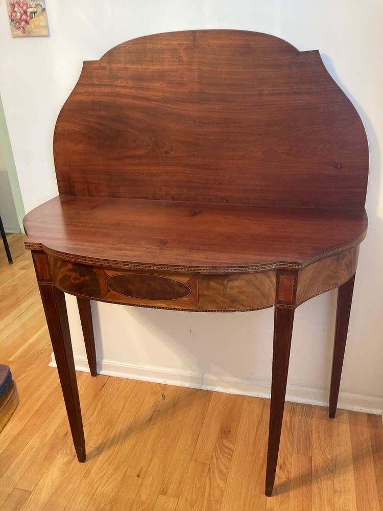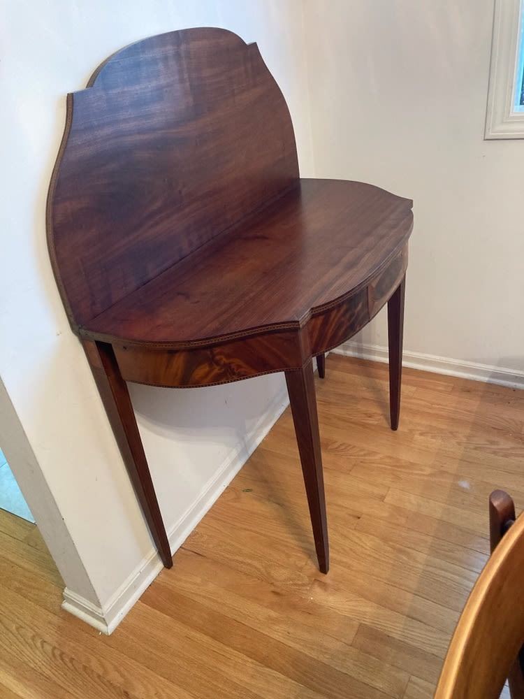Period lift top game table, Sheraton styled mahoganey, measures approx. 27.75 inches tall x 36" wide x 17.5 inches deep.