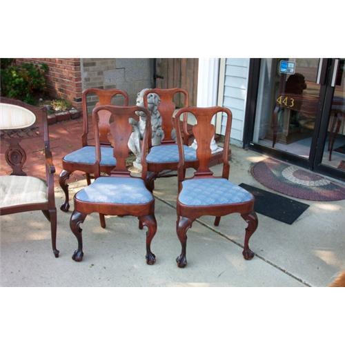 Antique Philadelphia Chippendale matching chairs in walnut in excellent antique condition. Incredible deep carved legs with a ball and claw foot.