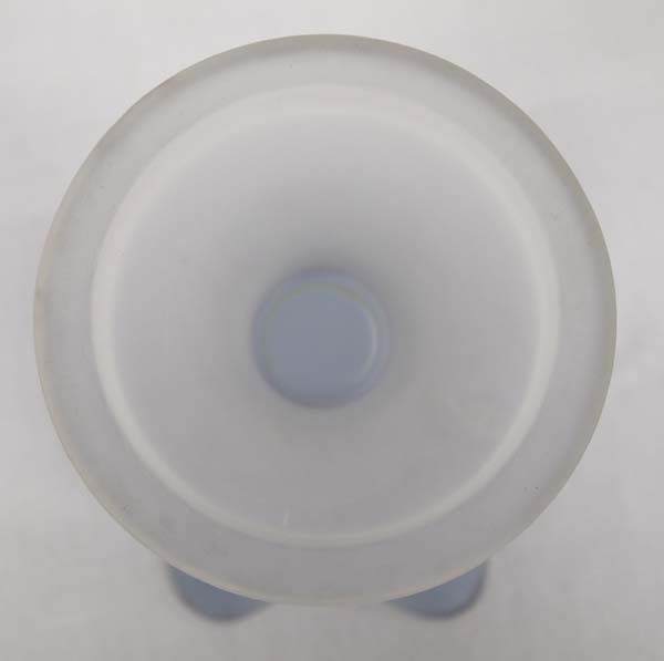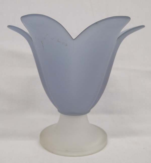 Periwinkle Blue Satin Glass Vase, measures 7''H x 7.5''