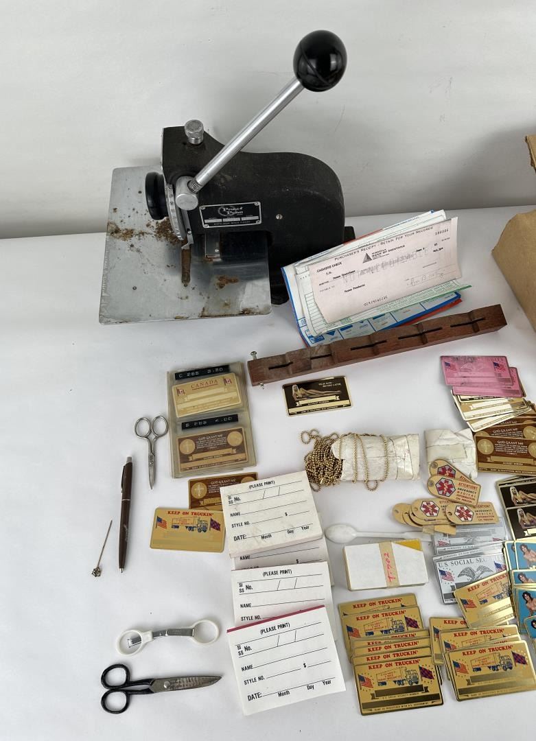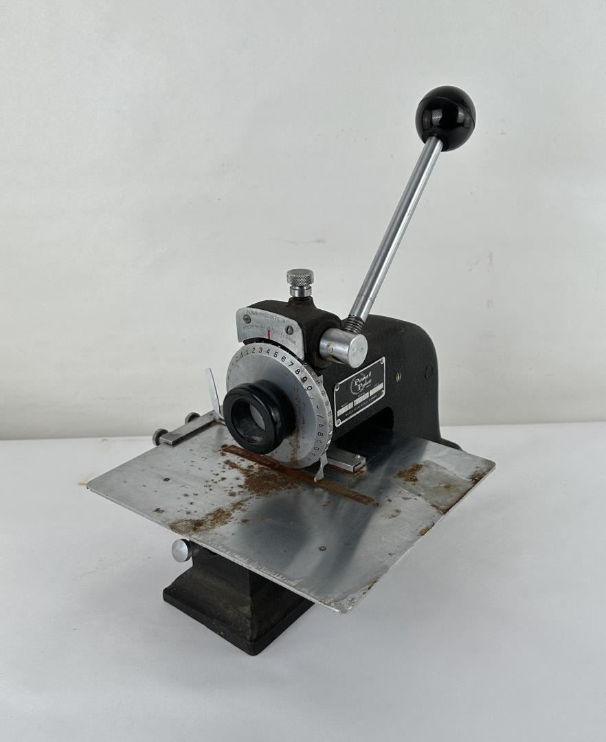 Nice example. Used to stamp dog tags and metal ID cards as shown.