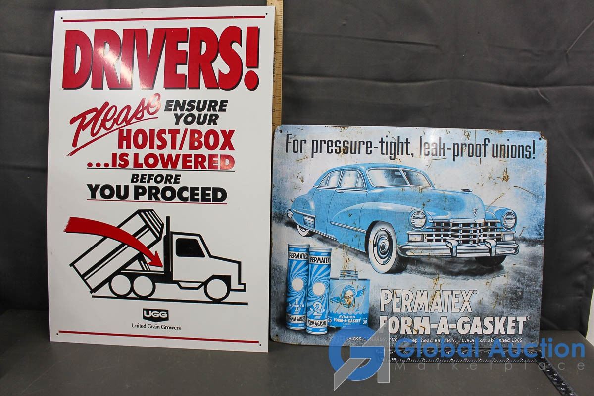 Permatex Form A Gasket & United Grain Growers Metal Signs