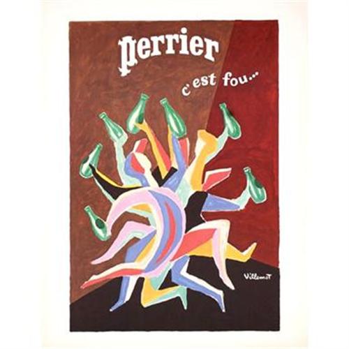 Original French advertising print for Perrier water by Villemot. About 25 x 17 inches, this piece is in A condition. Certificate of Authenticity is provided.