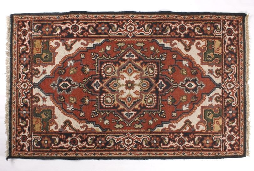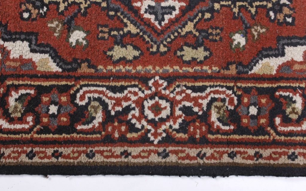 This is a Persian Bijar wool rug, with a prominent medallion motif. The Bijar rug is known for its incredible durability, and heavy pile. This rug shows a large central medallion, with intricate floral borders. The rug shows good condition overall. The piece measures