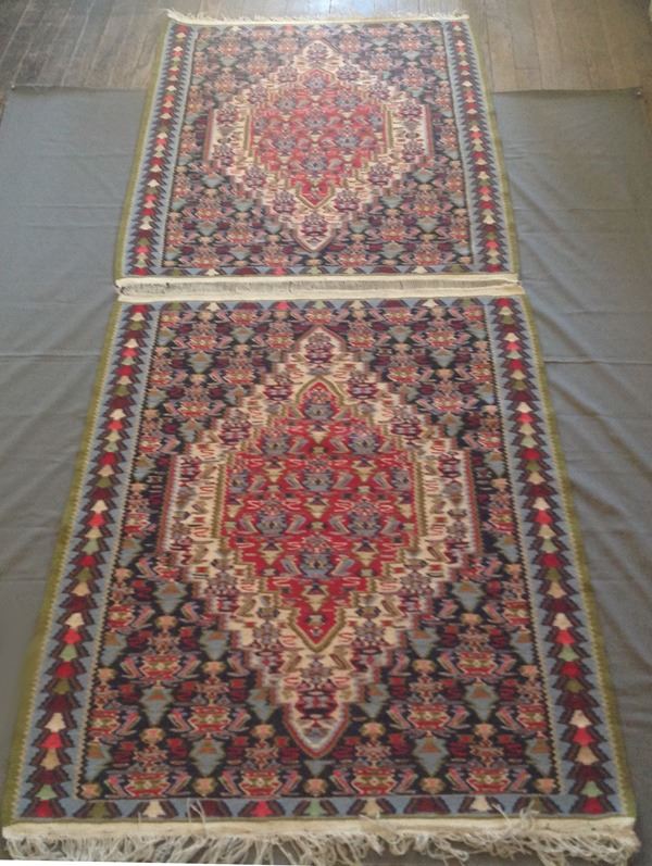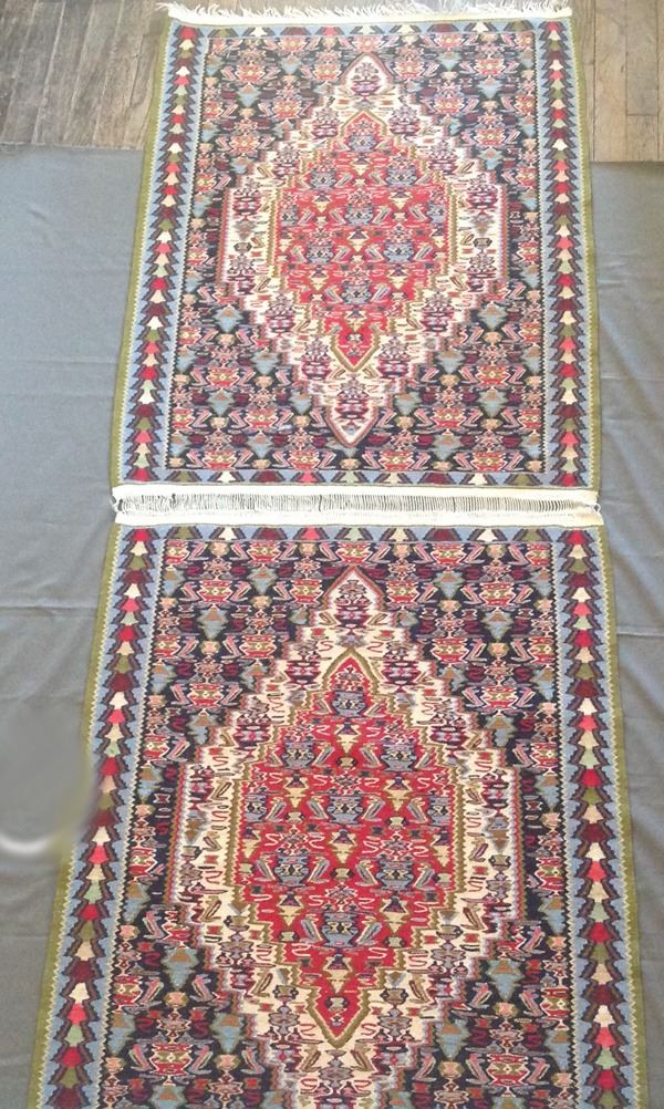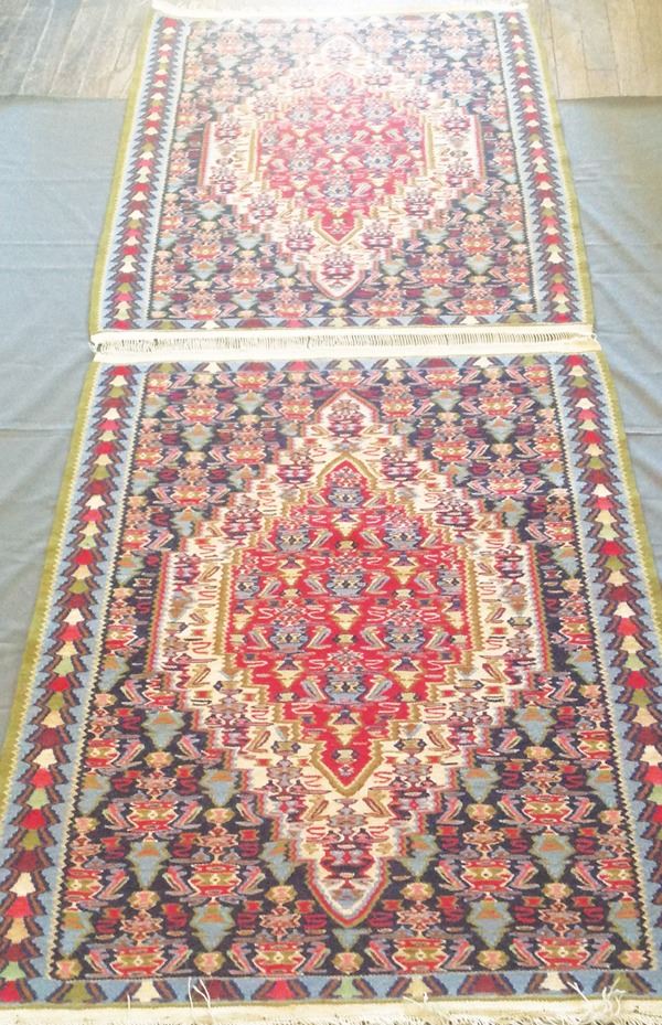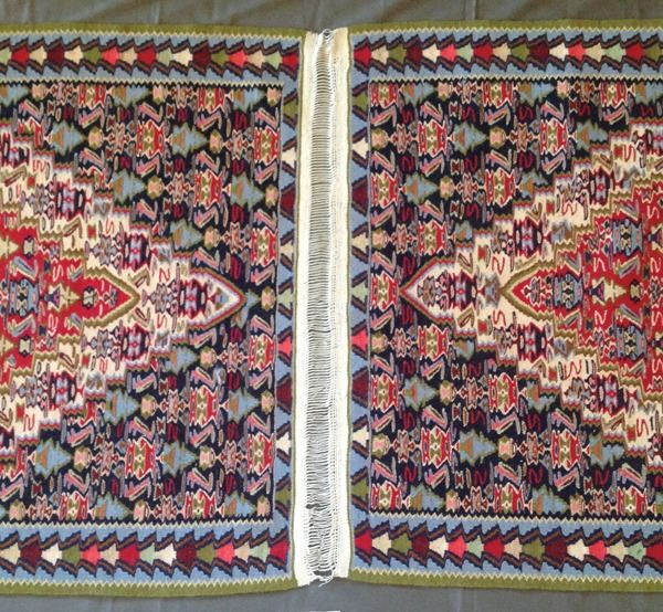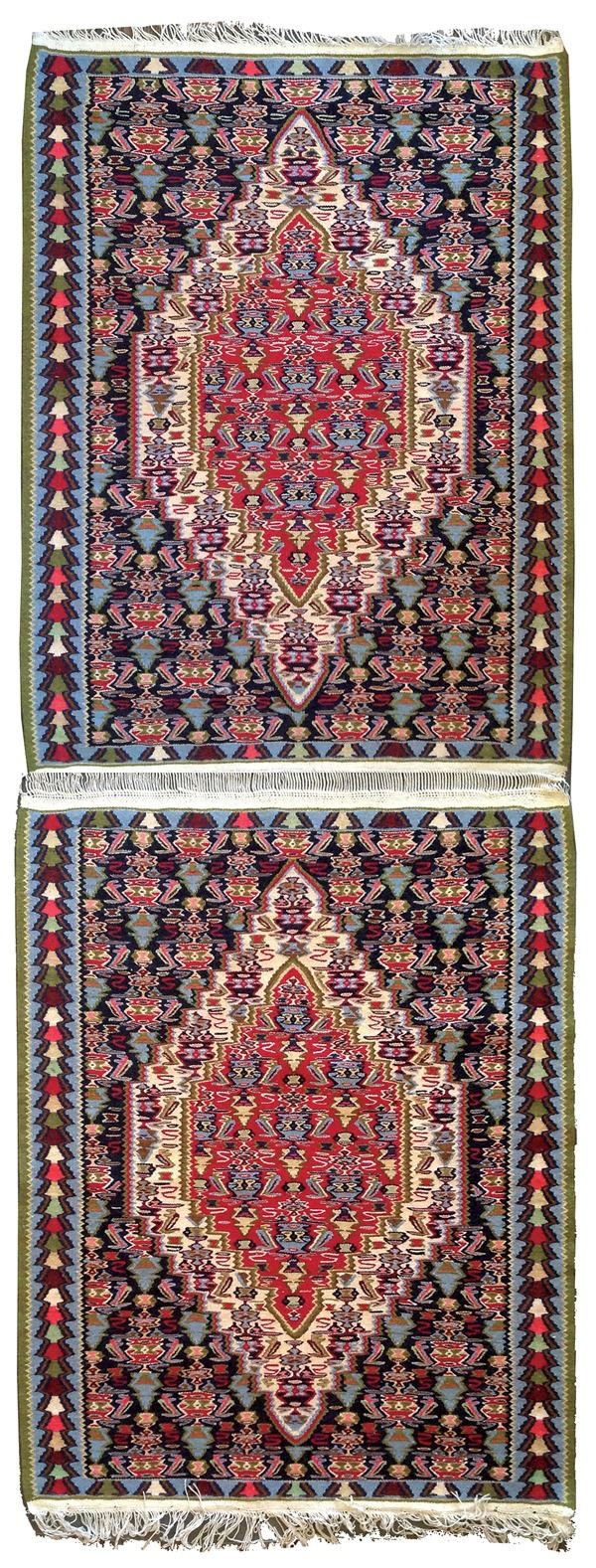 Hand woven, all wool Kilim double rug joined by the warp strings these are often used as decorative panels. Very good condition.Mid 1900s84" x 32" each (x2)