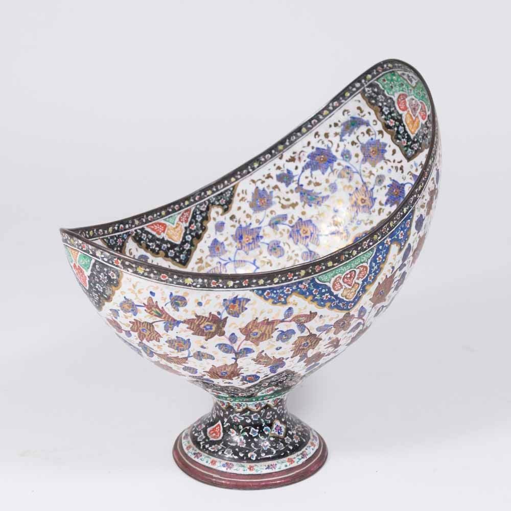Approx. 7" H x 7 1/2" x 5". From a Manhattan estate. Damages and repairs to enamel.