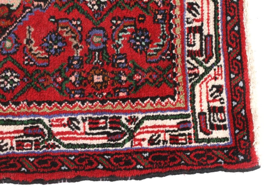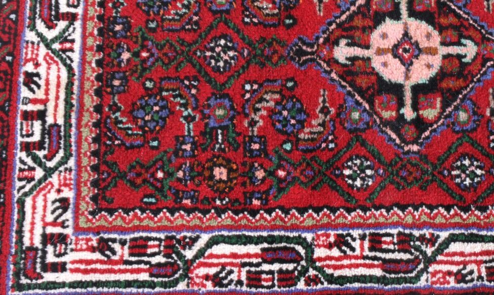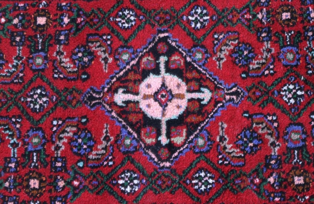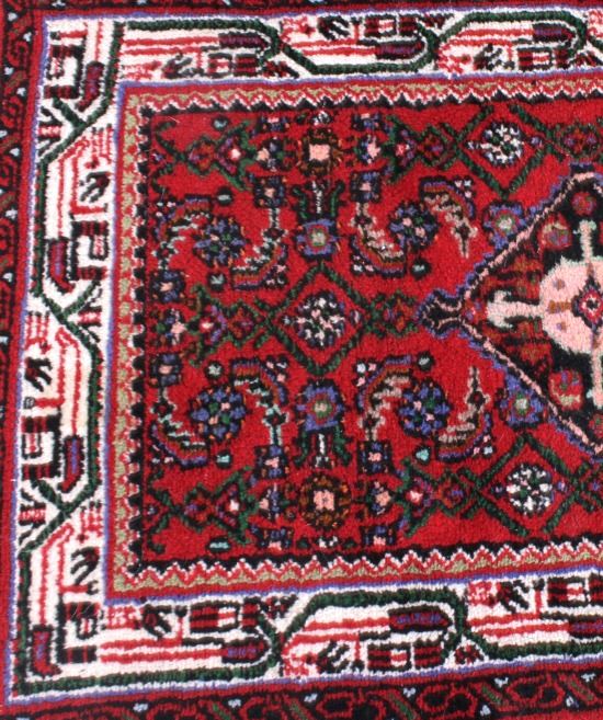 This lot features a Kashan or Persian Medallion rug. The rug was made in the Homeclan province of Iran. The rug features vibrant colors, a base of cotton and a 100% wool pile. The rug is in good condition for its age. Measures: 22" W x 46" L