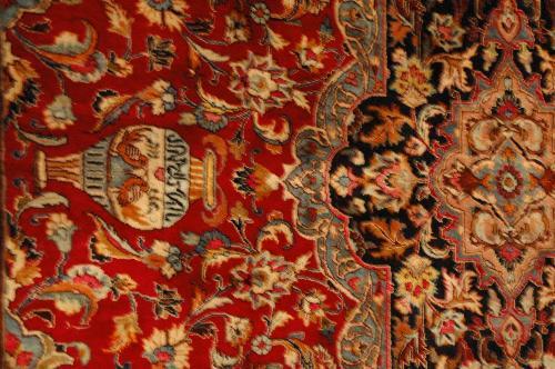 A hand knotted Persian medallion rug. Some wear due to age. 9'11" x 12'9". Local Pick-up Only.