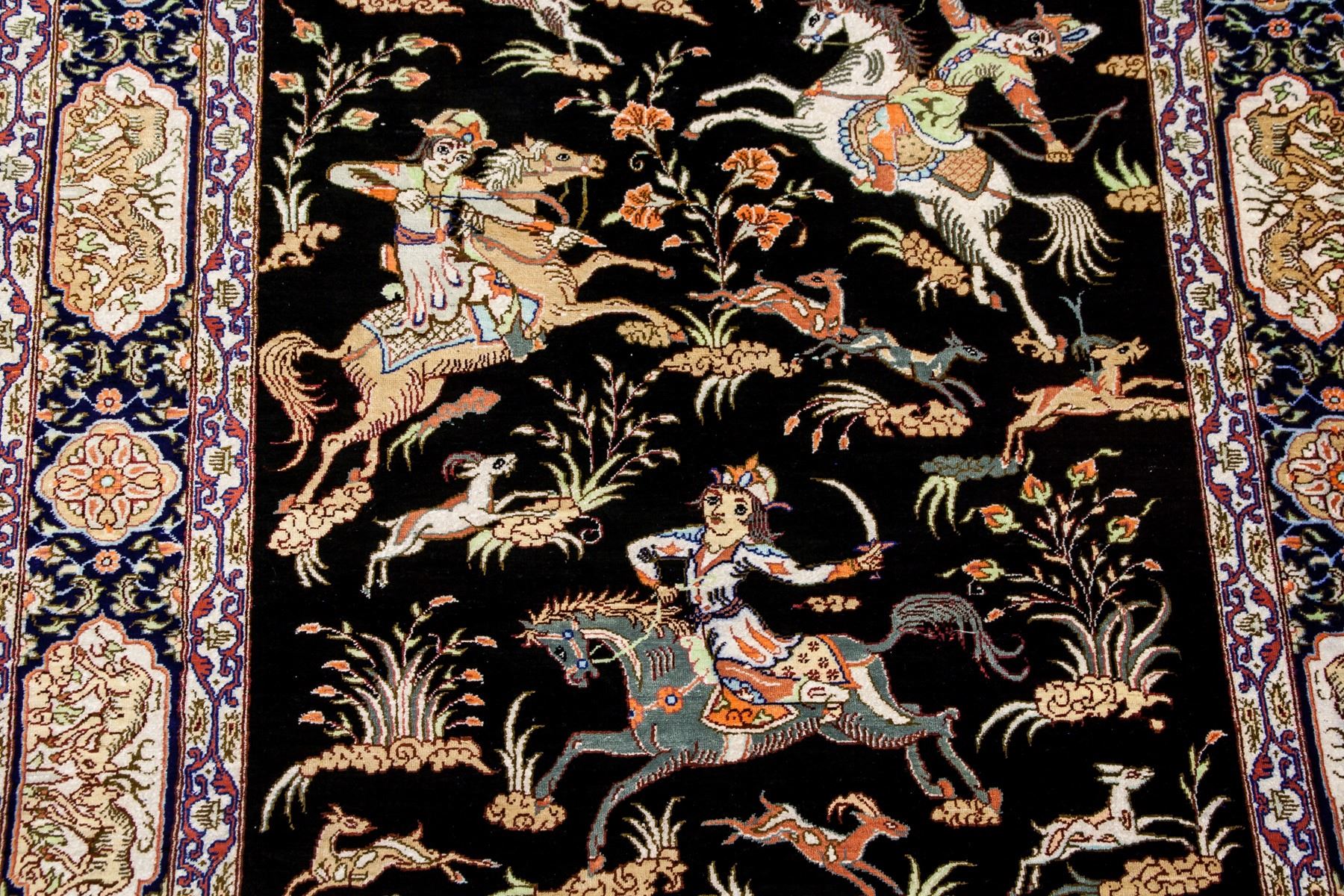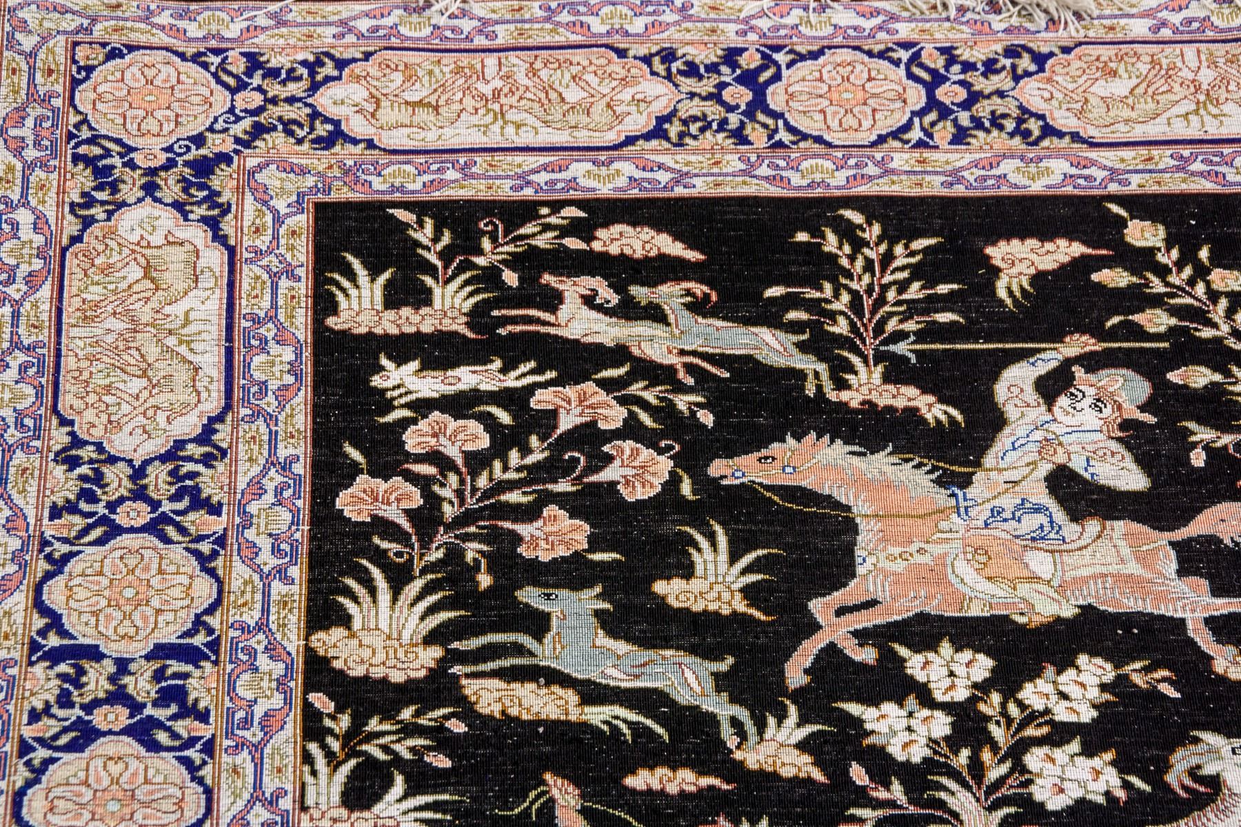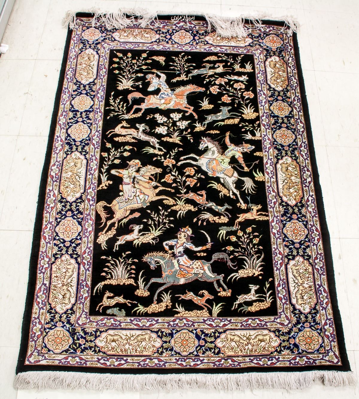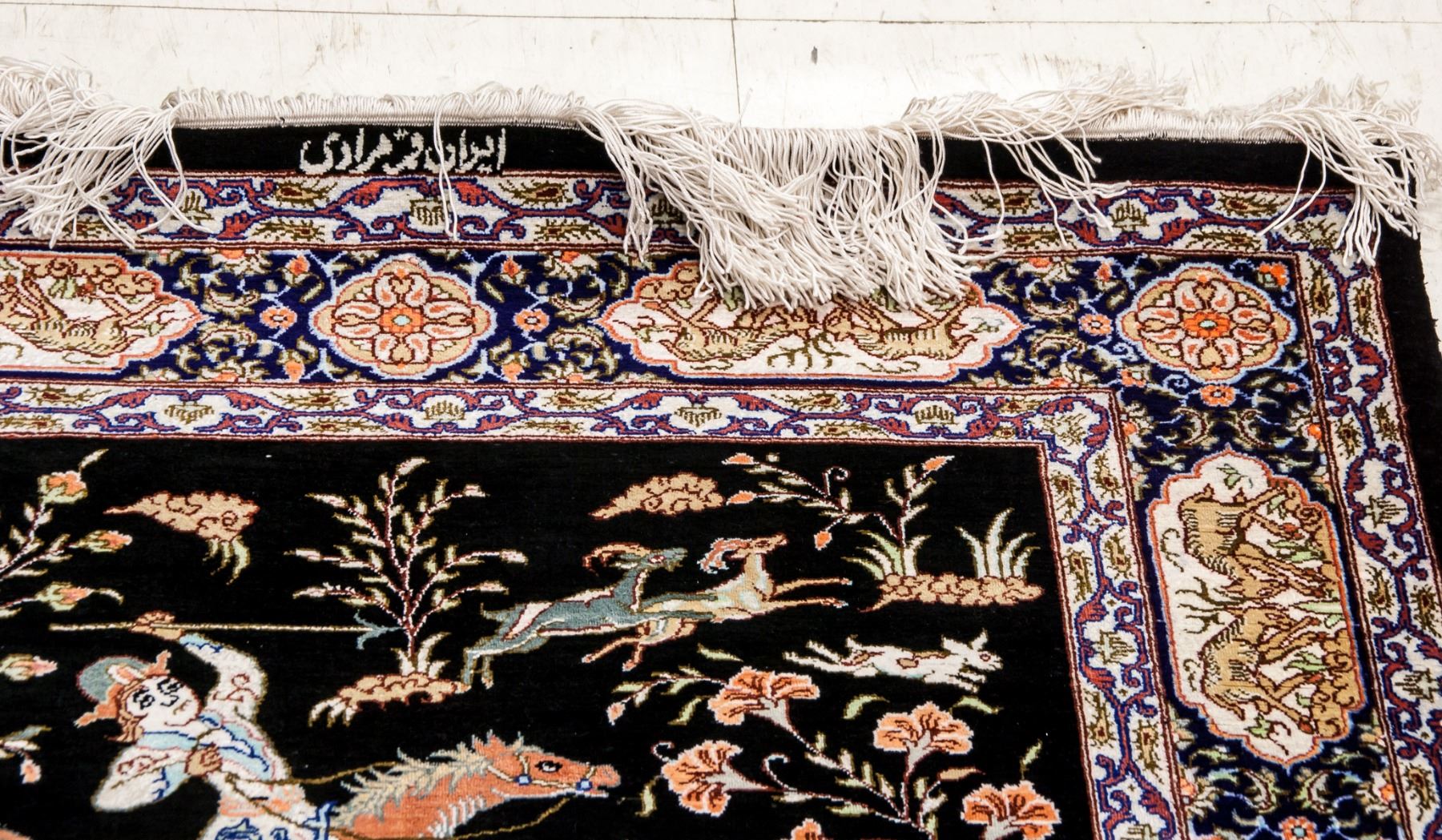 Persian silk rug, pure silk, designed by Qum Mardab, with appraisal certificate issued by Silkco Decorative Persian & Oriental Rugs, value $13,000 Canadian dollars, 3 x 5 feet (91.44 x 152.4 cm)